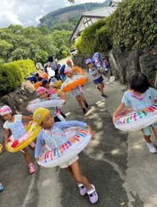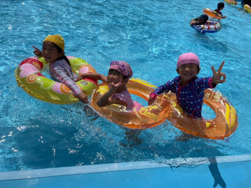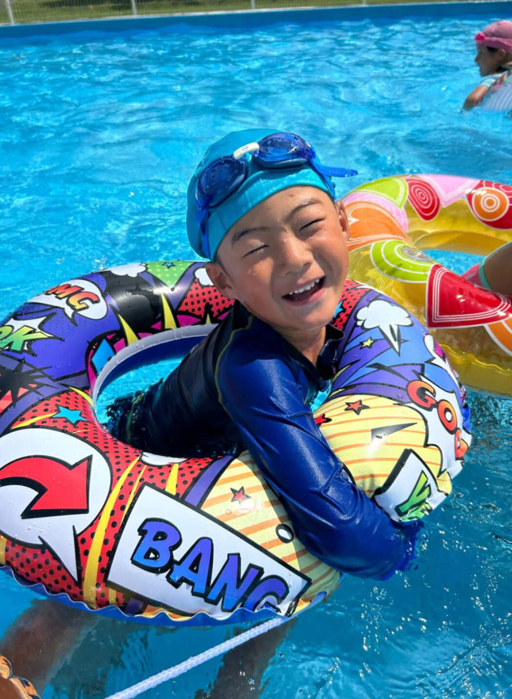 バスに乗り、まず向かったのは、川原自然公園!到着後、プールで遊びました。