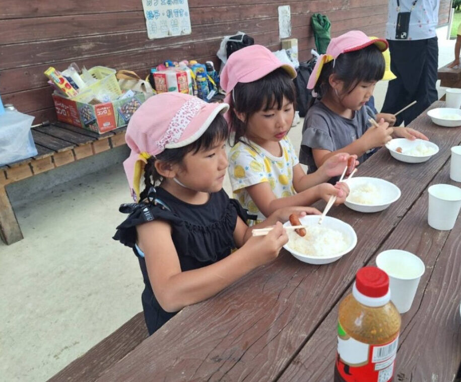 テンションが上がり、夢中で遊ぶこども達。沢山遊んでお腹が空いたころに、テラスでBBQをしました。