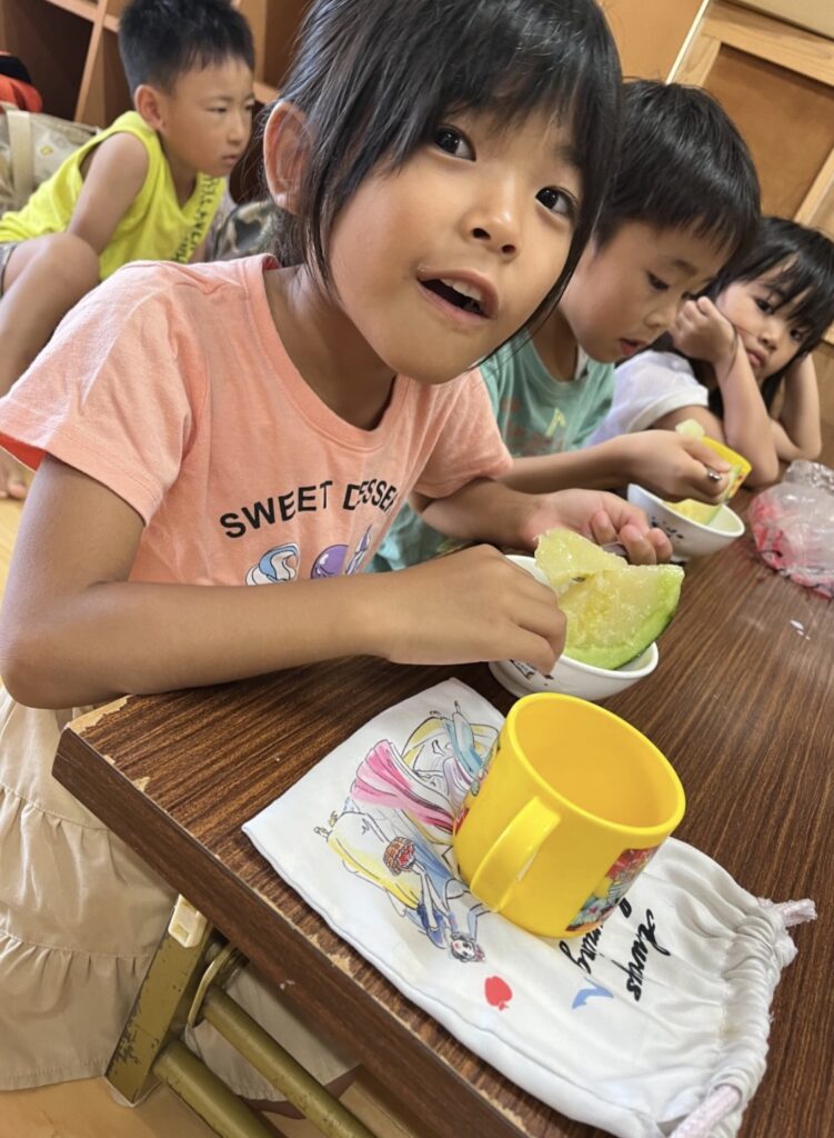 そのあとは、公園で遊んで、こども園に戻り、15時のおやつタイム✨