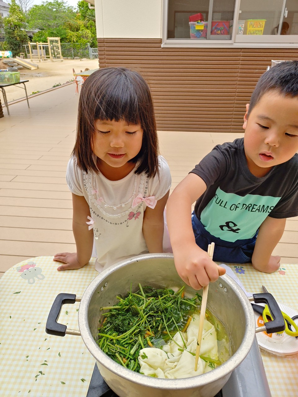 さっそく、それぞれの野菜を煮詰めて、色を染み込ませていきます★色の付き方も、野菜によってそれぞれで、子ども達の予想外の結果になったりと、楽しみながら実験をしている様子でした。