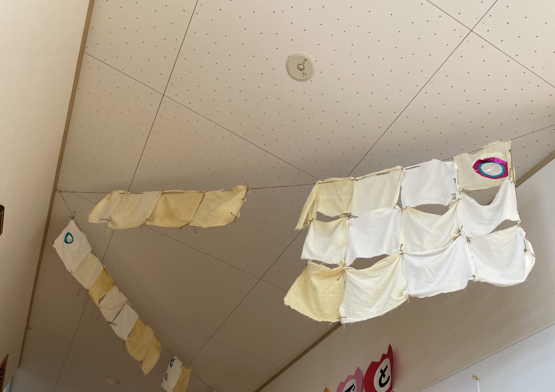出来た染め布を使って大きな鯉のぼりを製作しました。