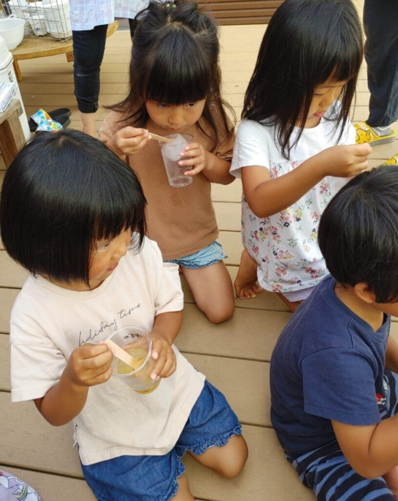 酸っぱいけど美味しい♡とごくごく飲んだり、ちょっぴり苦手なお友達も。感想は様々でしたが、いつもとはちょっと違う梅の味を知るいい機会になりました。