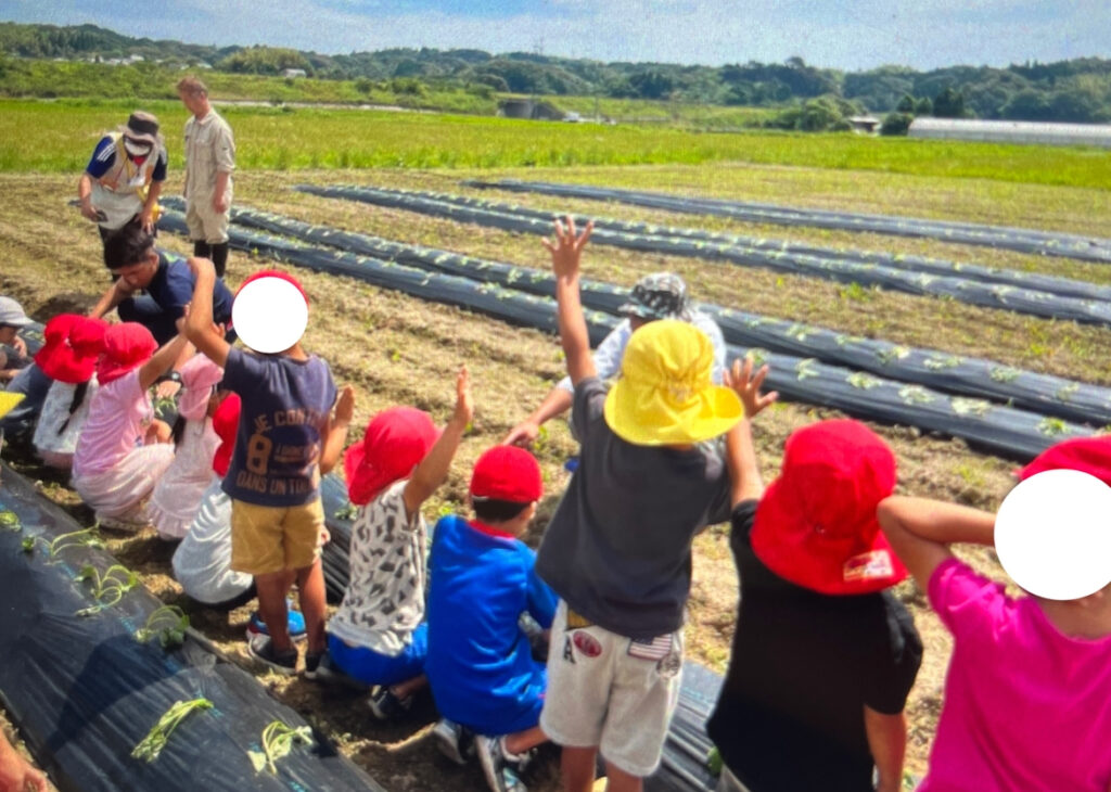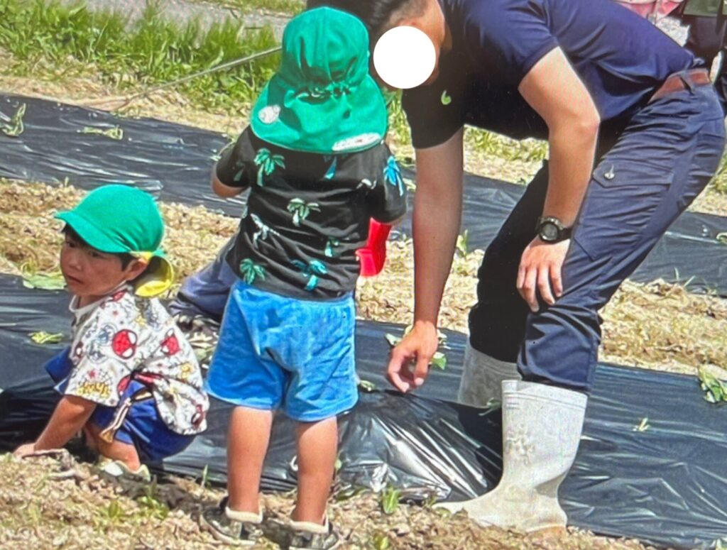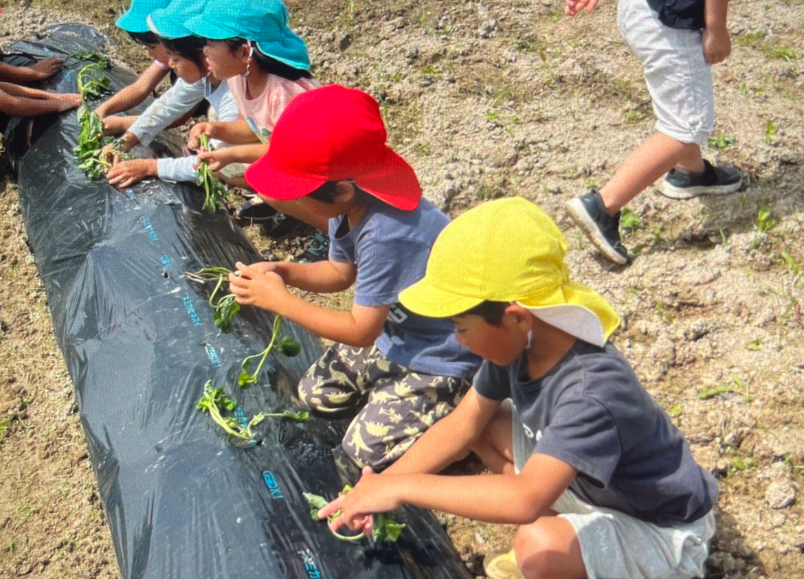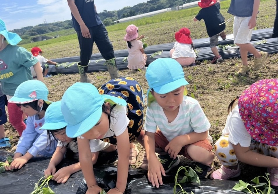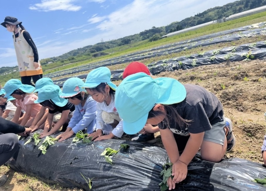 那珂こども園のお友だちも一緒に、れんげさん・うめさんが中心となって芋の苗植えをしています!!
