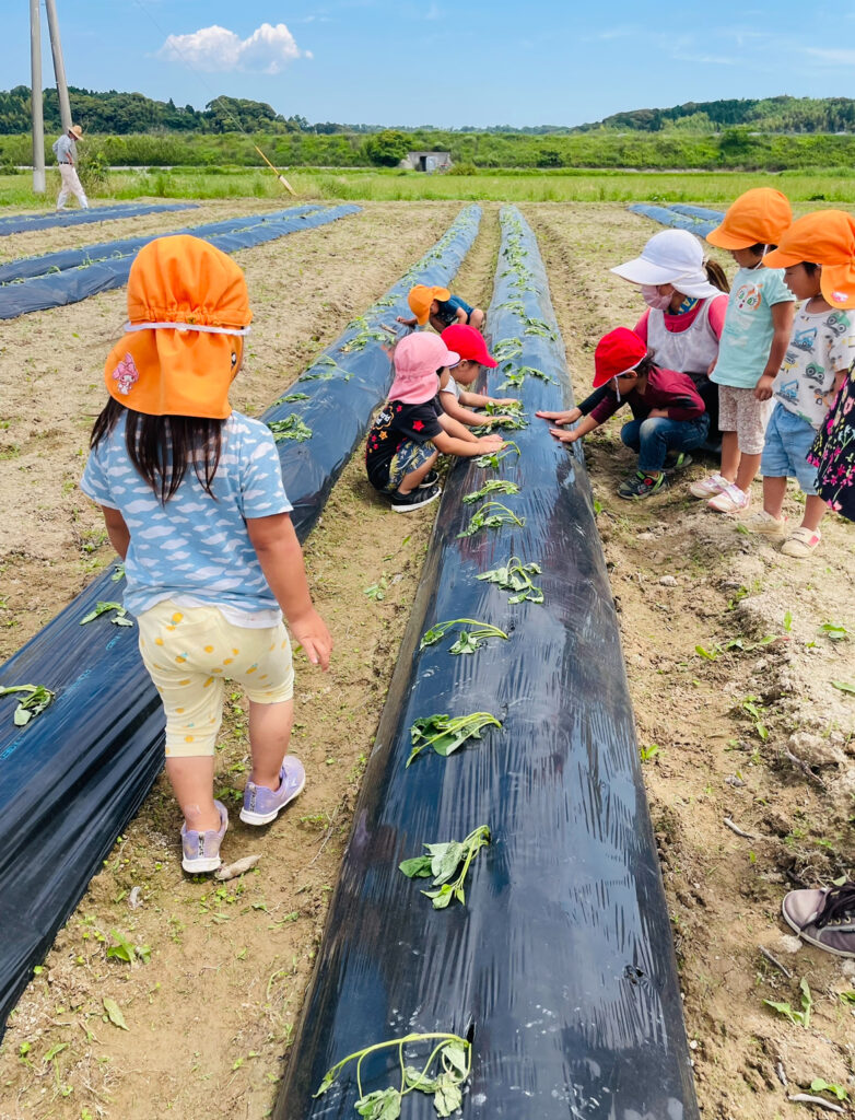 お散歩のときなど、「大きくなってるね!」と観察しながら、お芋ができるのを楽しみにしている子どもたちです!