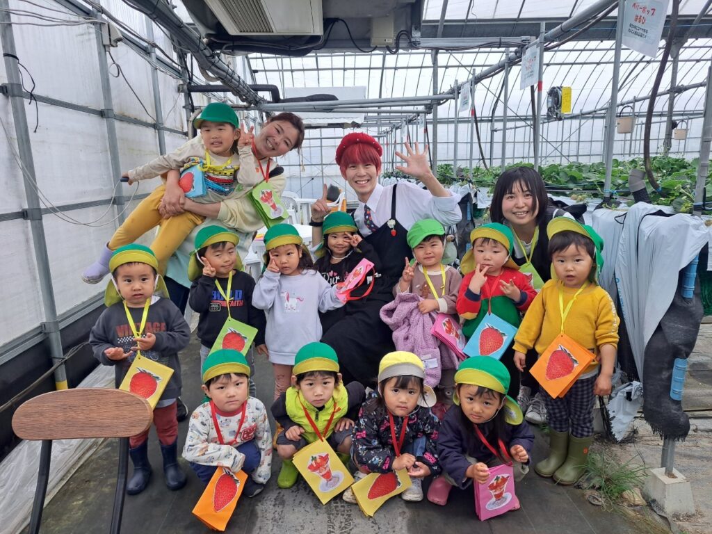 もも組さんが一株のいちごの苗を大切に育てて観察していたり、いちごが大好きな事をお話させて頂き、ひなたいちご園さんのご厚意で、お勉強や観察、いちご狩り体験をさせて頂きました。ひなたいちご園様、貴重な体験をありがとうございました。