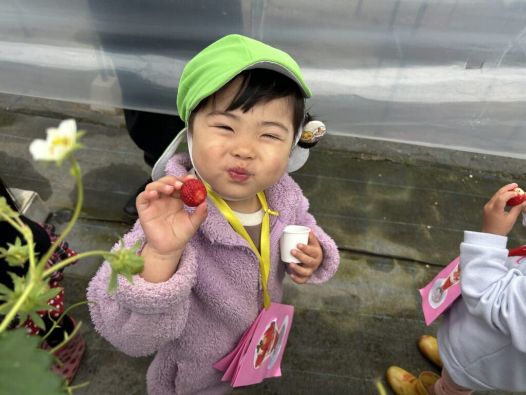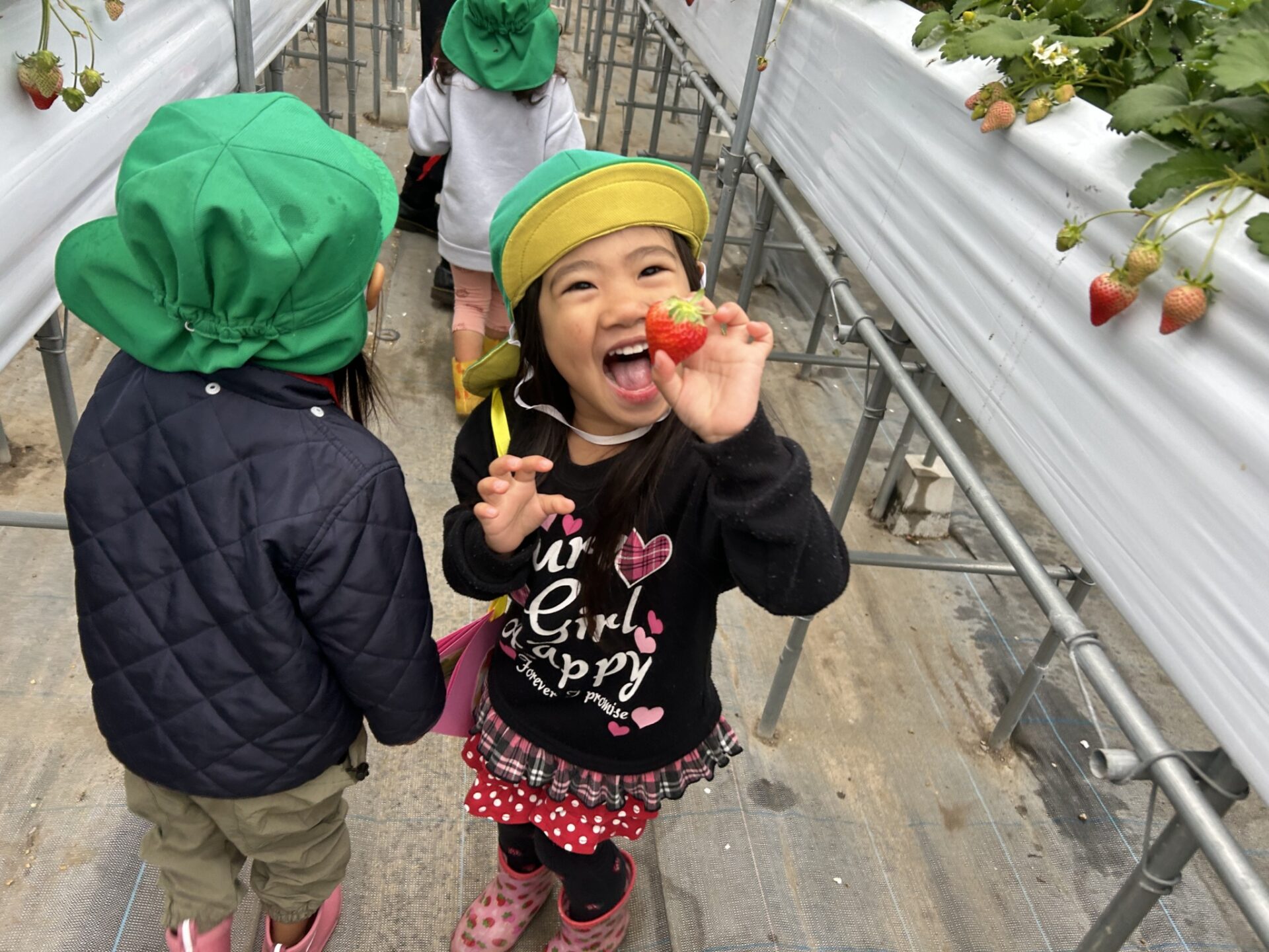 「いちごはね、下からどんどん赤くなるんだよ!」など目を輝かせながら沢山のお話をしてくれました。