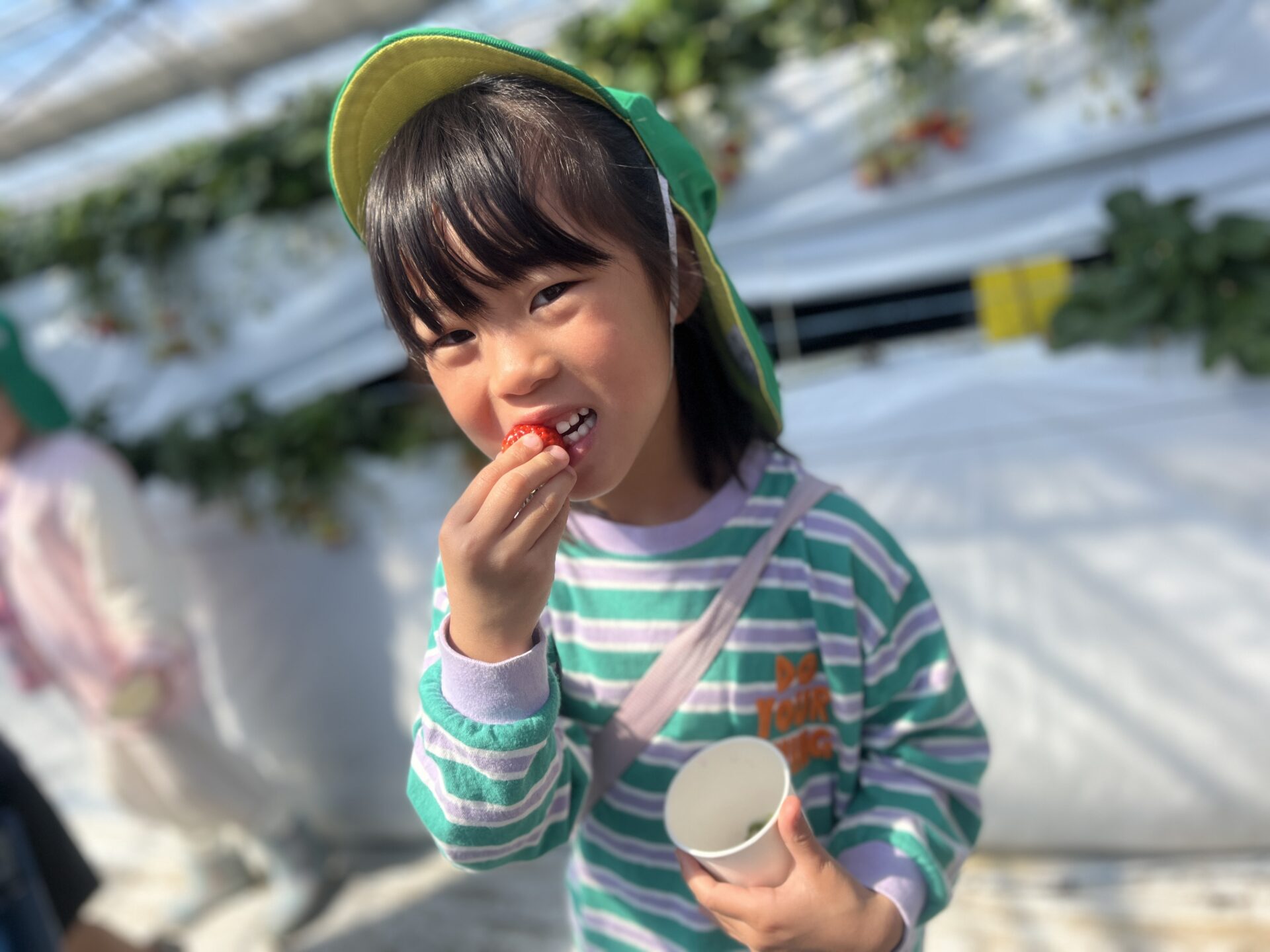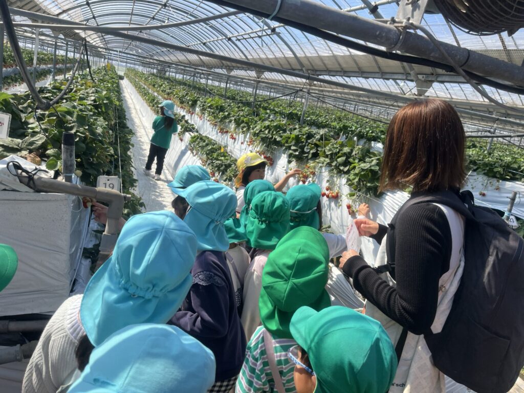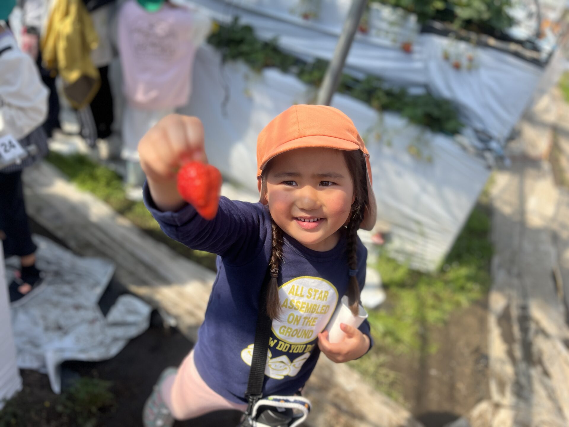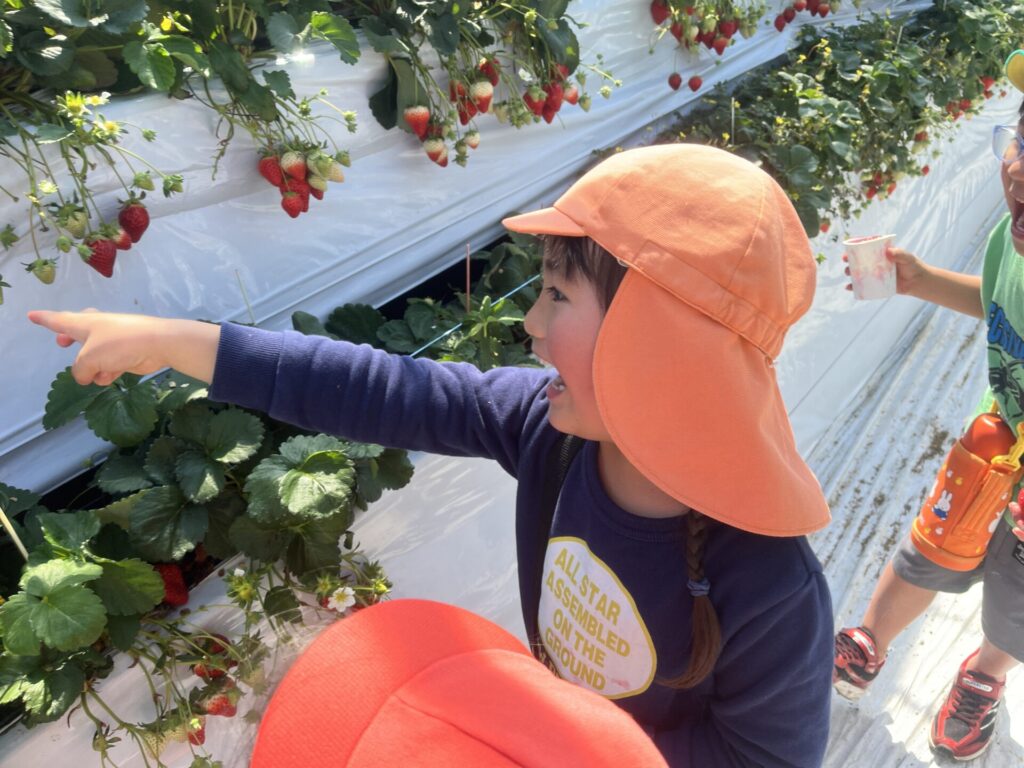 いちご園に着くと、「いちごの匂いがする!」「いちごがたくさん!!」と大興奮の子どもたち😆最初に説明とお約束を聞いて、さっそくいちご狩り🍓