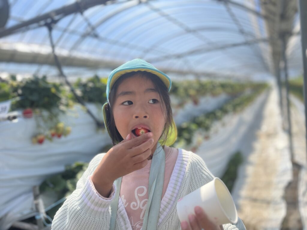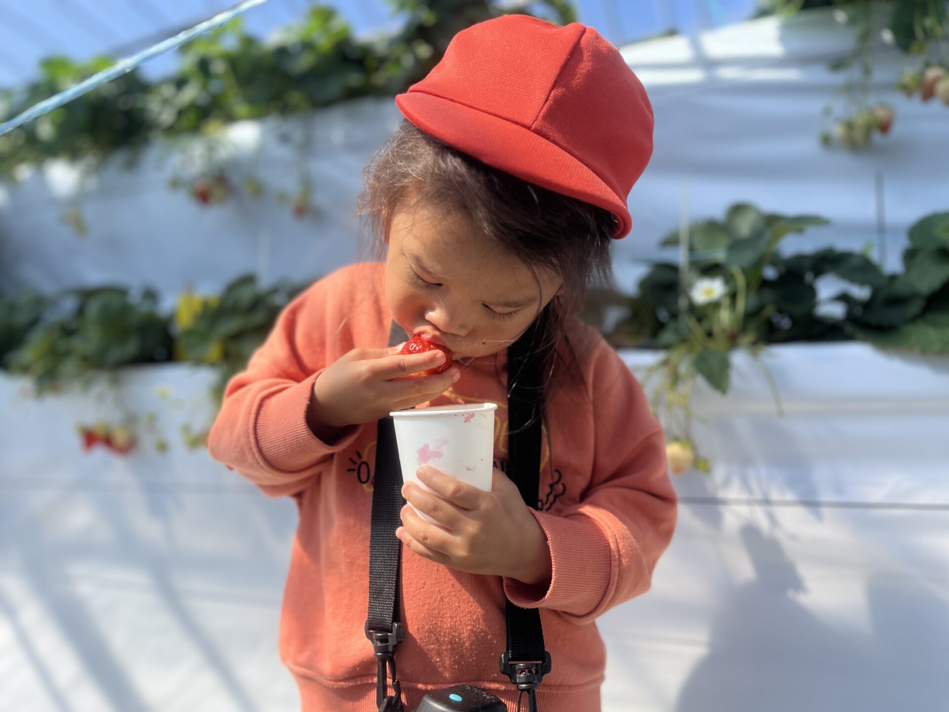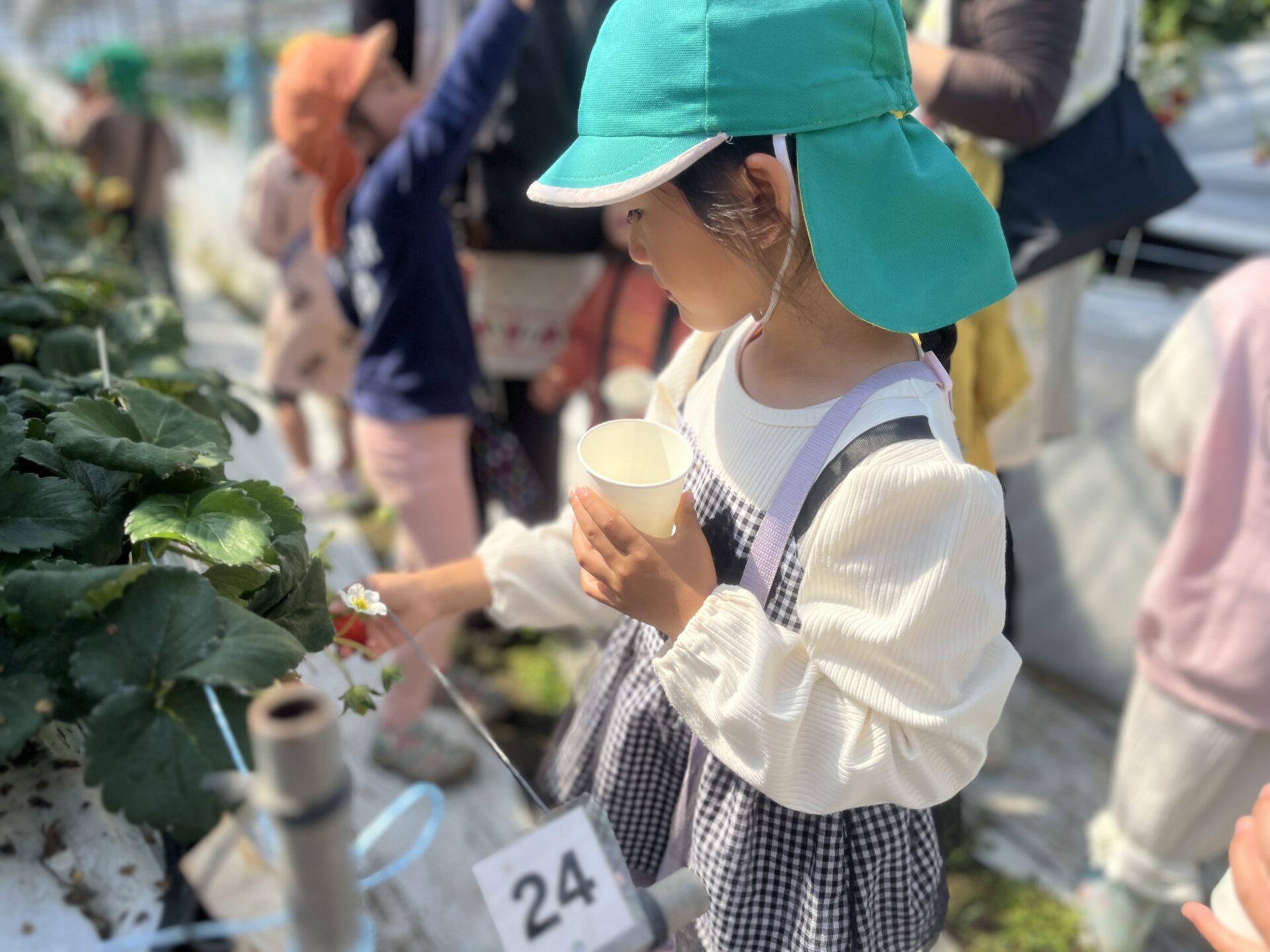 いちご園に着くと、「いちごの匂いがする!」「いちごがたくさん!!」と大興奮の子どもたち😆最初に説明とお約束を聞いて、さっそくいちご狩り🍓
