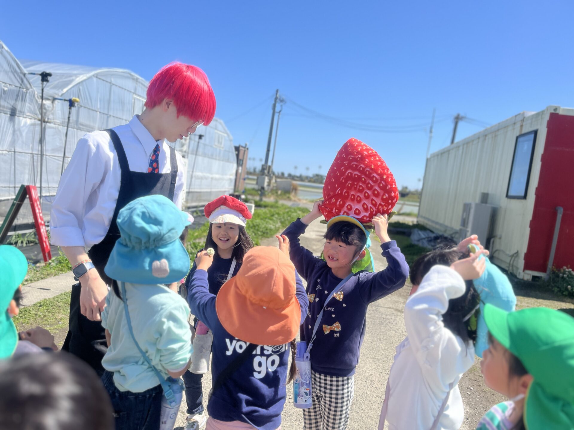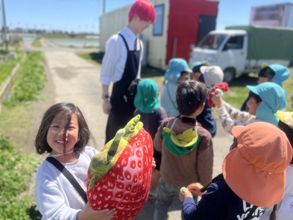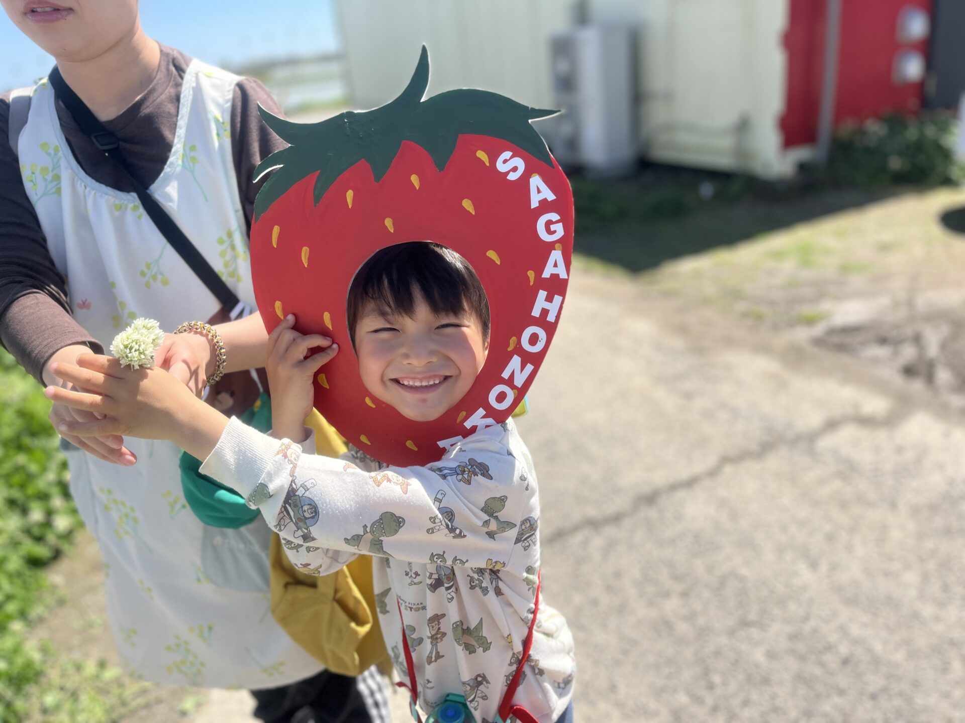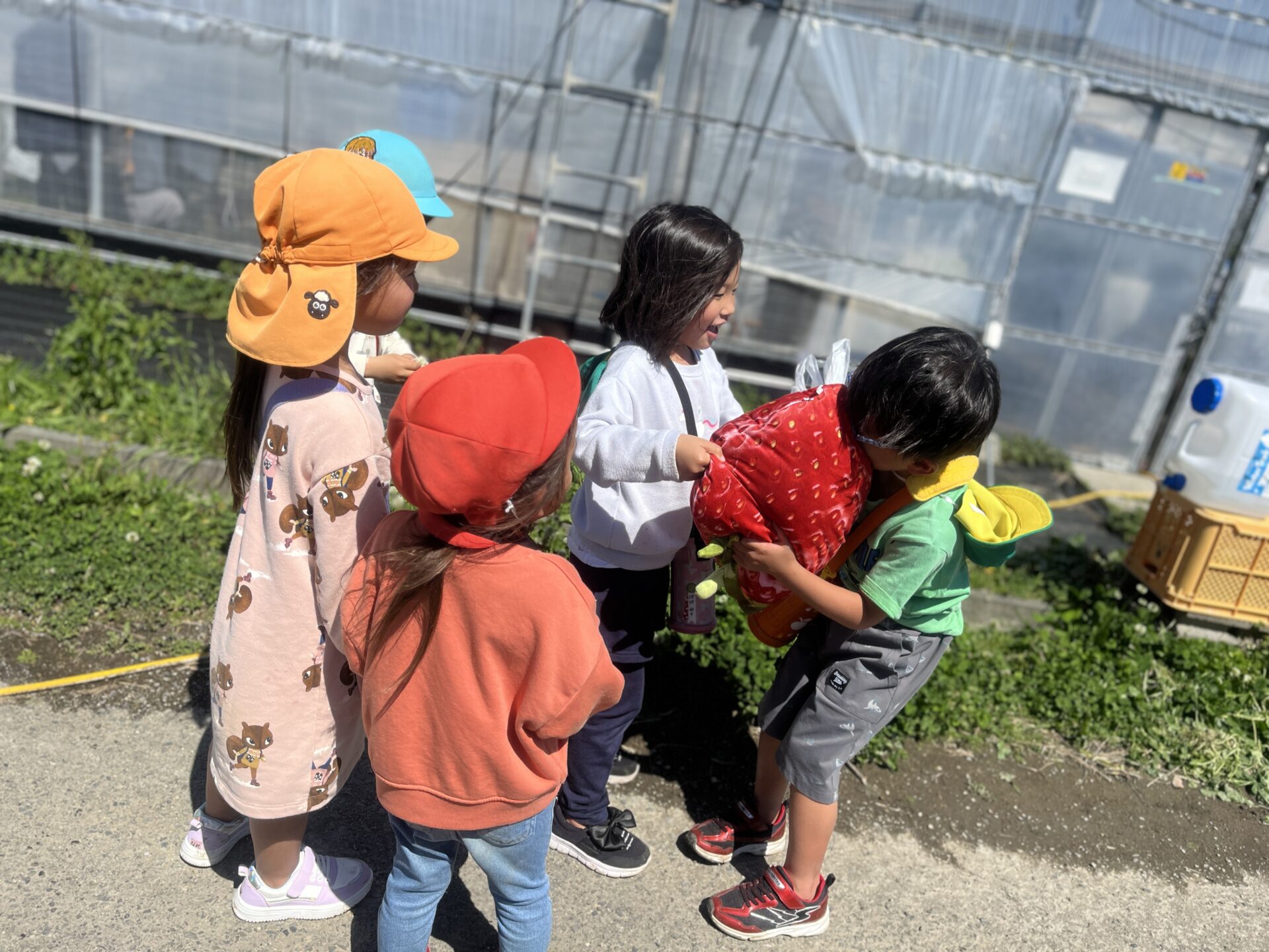 今年度、以上児さんの最後の野外保育で「ひなたいちご園さん」に行ってきました!!お天気もよく、みんな朝からワクワク✨️