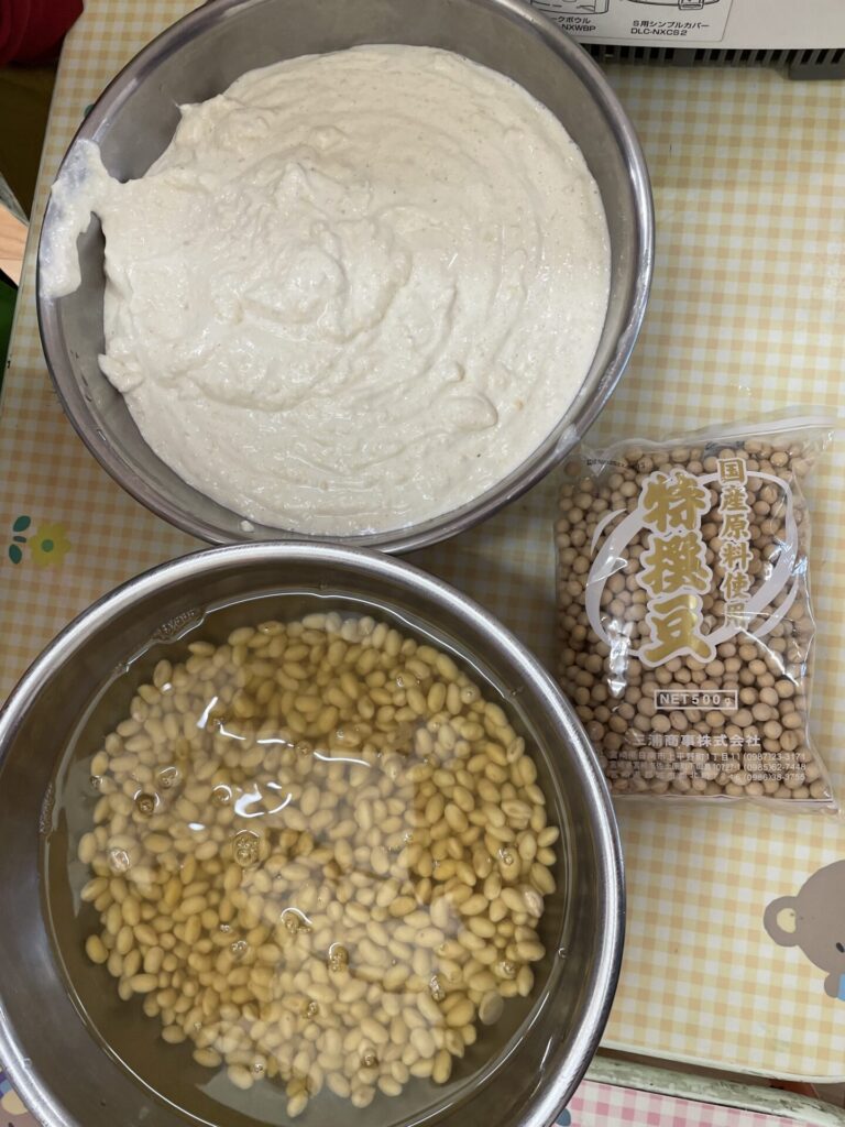 以前、育てた大豆からずんだ餅をつくり、今回はお豆腐作りに挑戦しました。