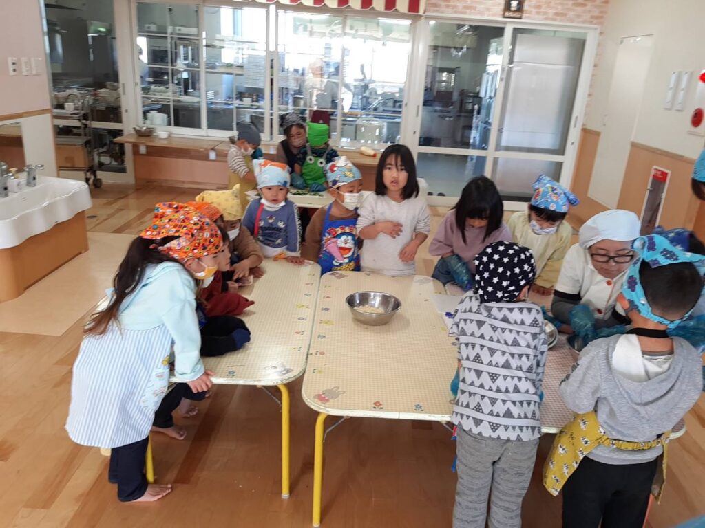 大豆から、おからや豆乳、お豆腐など様々な物に変わる変化に興味や驚きを持ってくれると嬉しいなぁと思います。