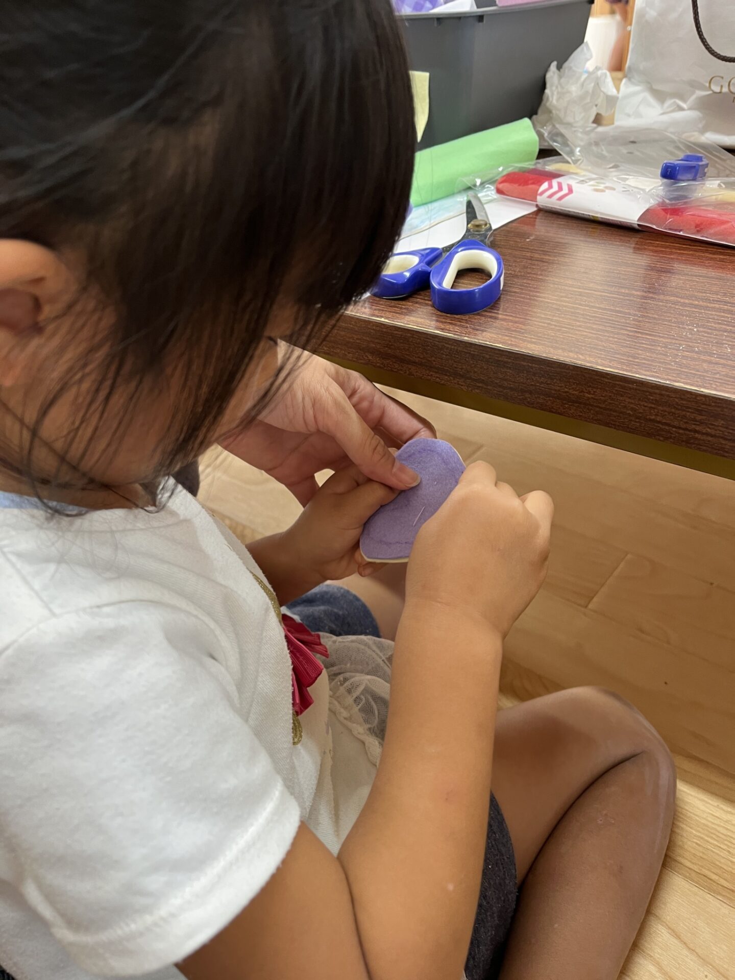年長さんの男の子は、「お母さんに作りたいー」とやってきて一生懸命に頑張る姿がありましたよ。