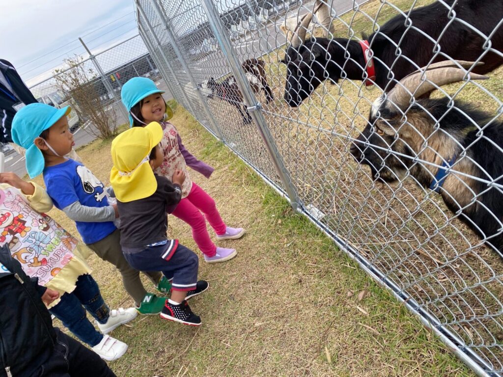 もも組さんで2グループに分かれて、ヤギパークに行ってきました。