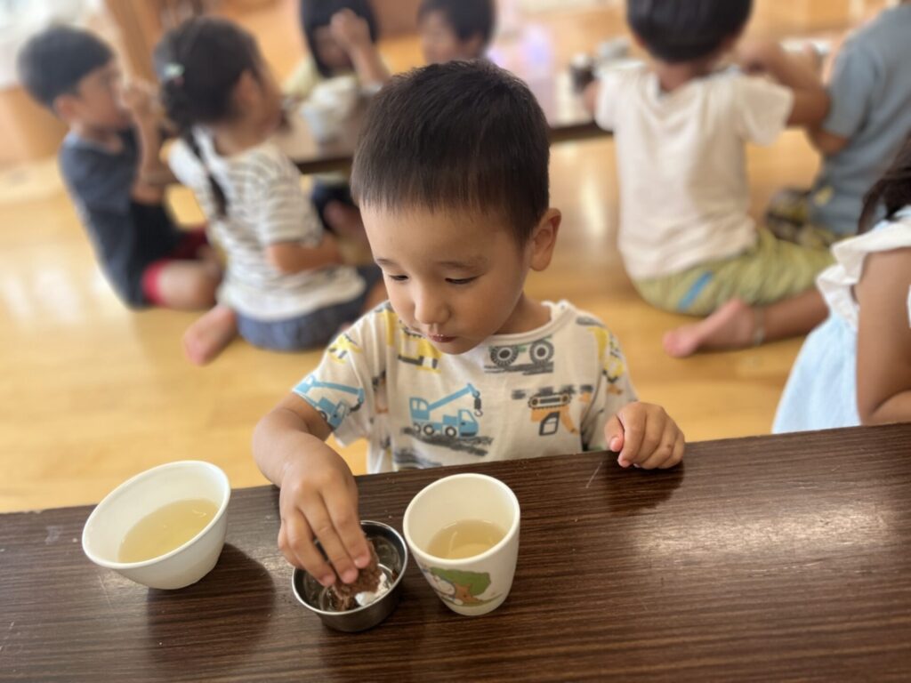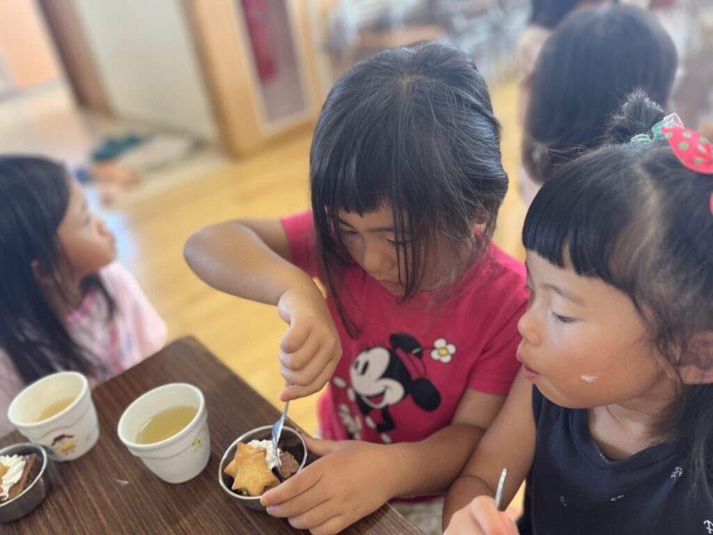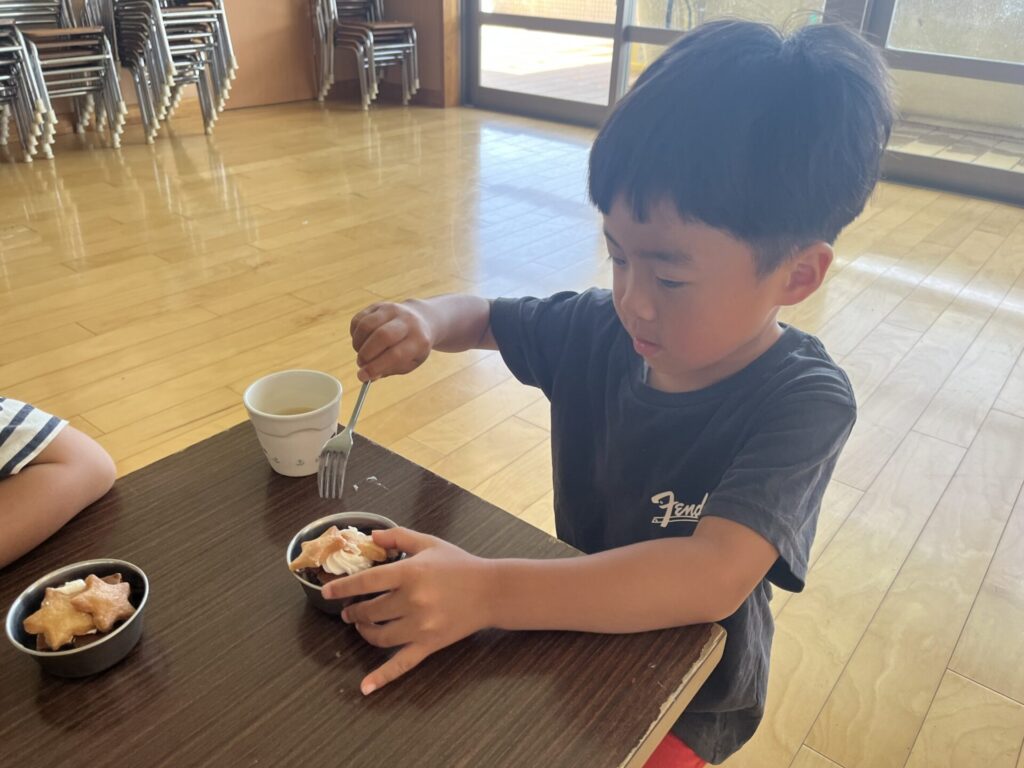 給食もおやつも七夕メニューで、「おほしさまだ☆」「ケーキとかさいこーじゃん!!」とニコニコ笑顔でとても嬉しそうで、美味しそうに食べていた子どもたちです!!