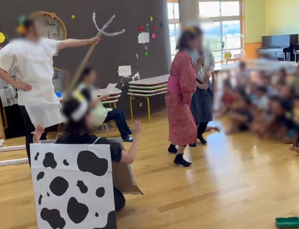 今年の七夕は先生たちで本気の劇をして七夕について知ってもらおう!と衣装を準備して、それぞれが役になりきって劇をしました☺いつもと違う先生たちを見て、「えー!?」「すごーい!」と驚いていたり、ニコニコと笑っていたりと子どもたちも楽しそうに劇を見ていました!!七夕ってなにか知ることができたかな・・・?