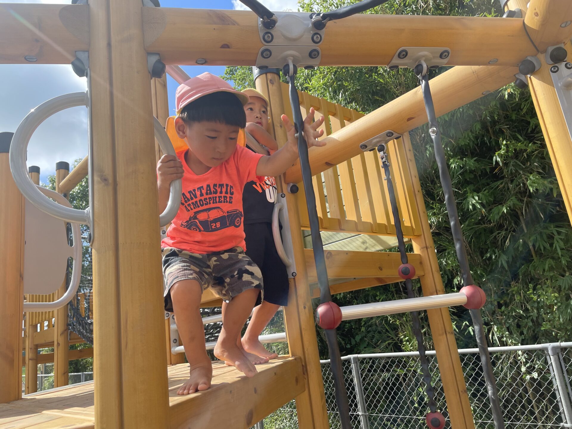 さっそくお外へ出て、様々な登り口から、新しい遊具に登ろうと挑戦していたり、コツを掴んだ子ども達は、挑戦中のお友達に登り方を教えていたり、時間いっぱいに遊具遊びを楽しんでいました。「明日早く保育園きてまた遊びたい!」と夢中になっています♪