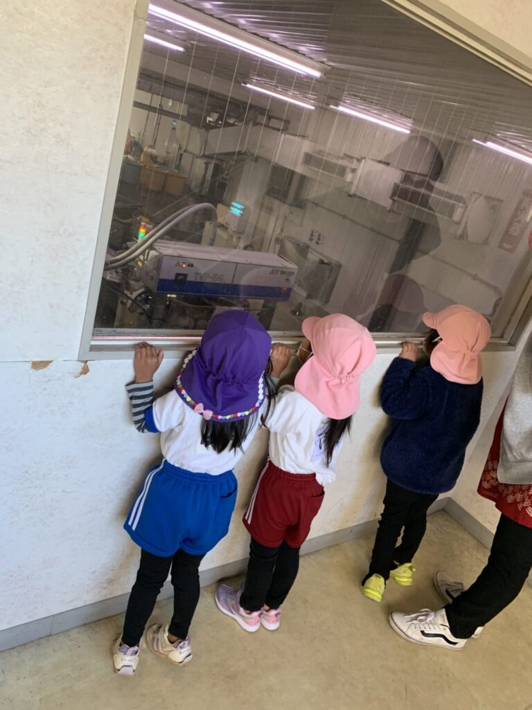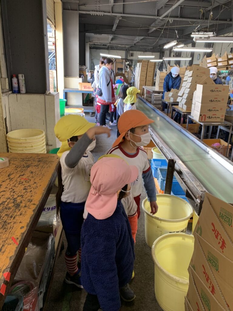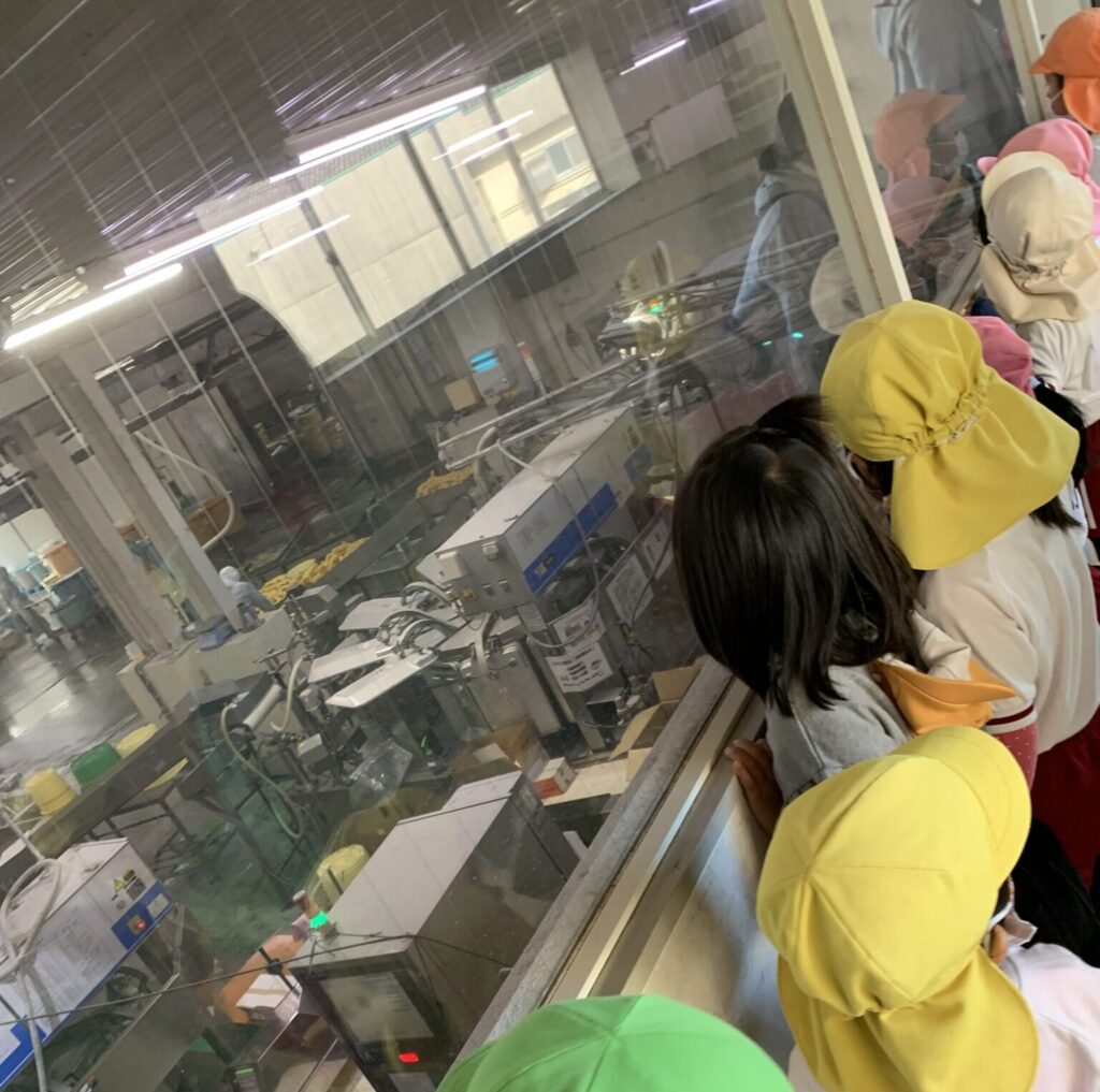漬物工場の見学では、到着すると作業員の人にしっかり挨拶をしてお話を聞いた後、工場に歩いていくと「いい匂いがする!」「なんかいっぱい段ボールある!」と普段見ることのない大きい機械や段ボールの多さにびっくりしていましたよ。ベルトコンベアーに乗って運ばれるお漬物たちを見て「どこに行くのかな」と哀愁漂う眼差しで見つめているお友達も😐