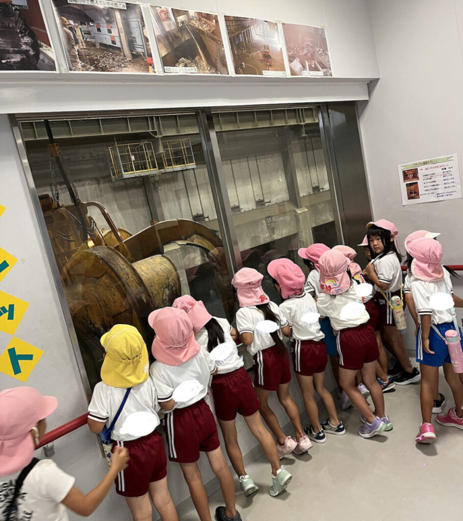ゴミをつかむ大きなクレーンに大興奮!係の方のお話も真剣に聞いていました。
