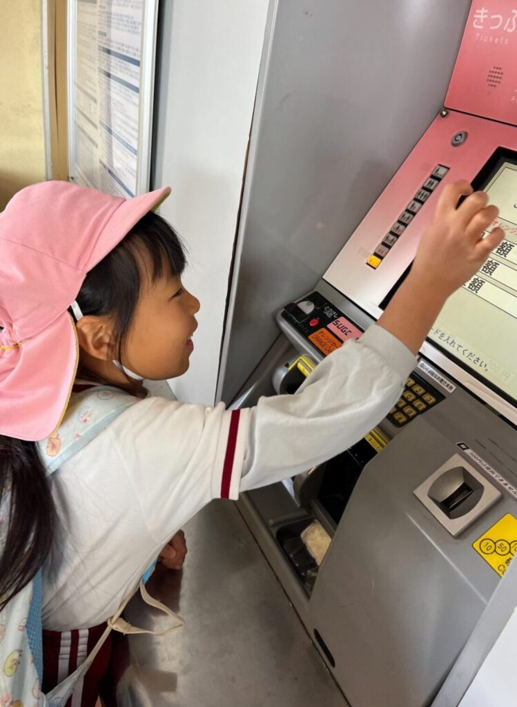 ドキドキしながら、自分たちで切符を買って駅員さんにハンコをおしてもらいました。