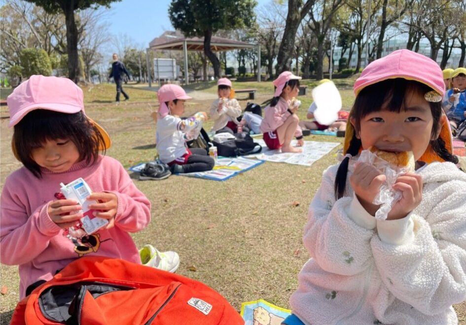 自分たちで選んで買ったパンは格別美味しかったようでニコニコいい笑顔で頬張る子ども達。
