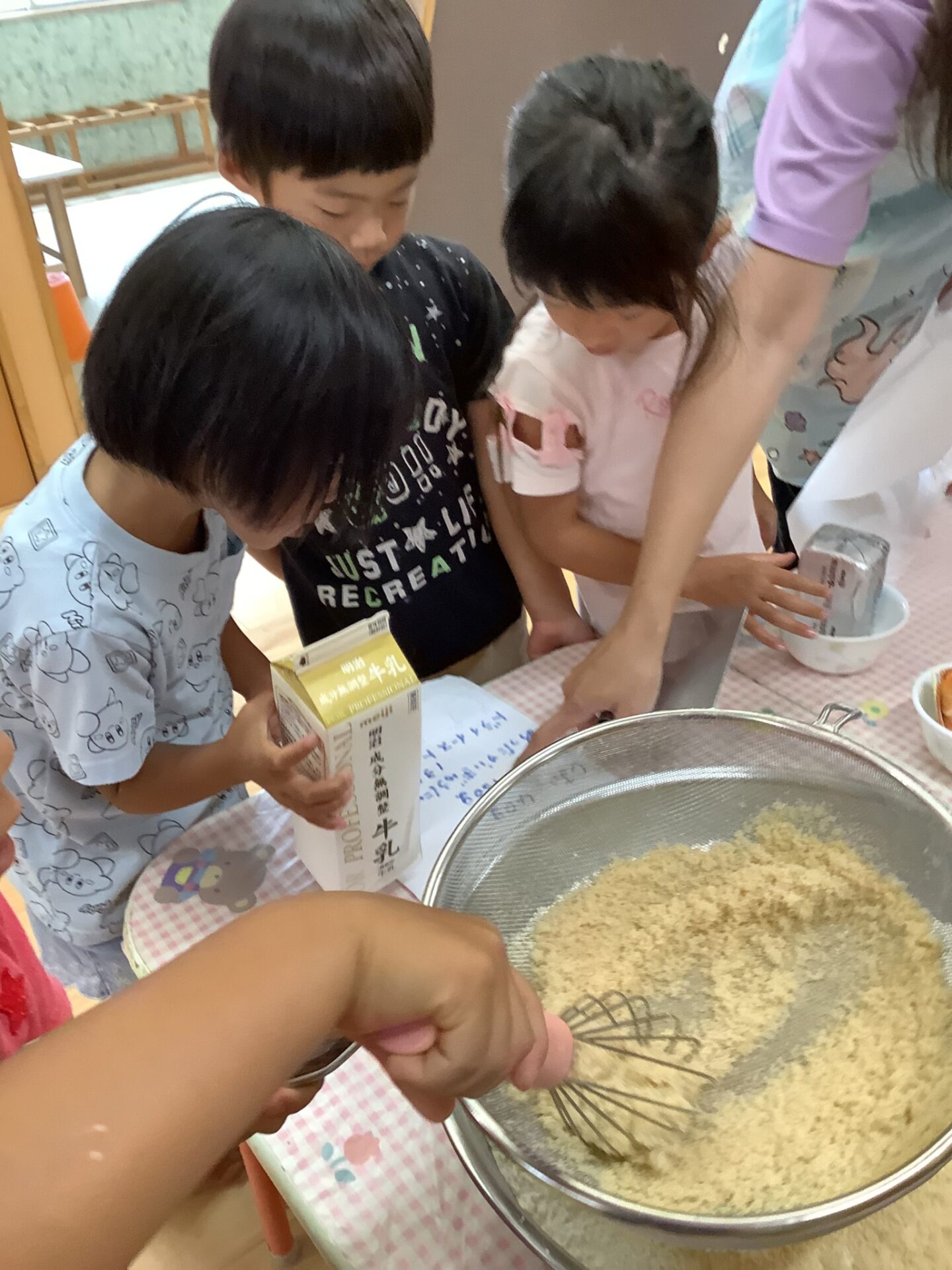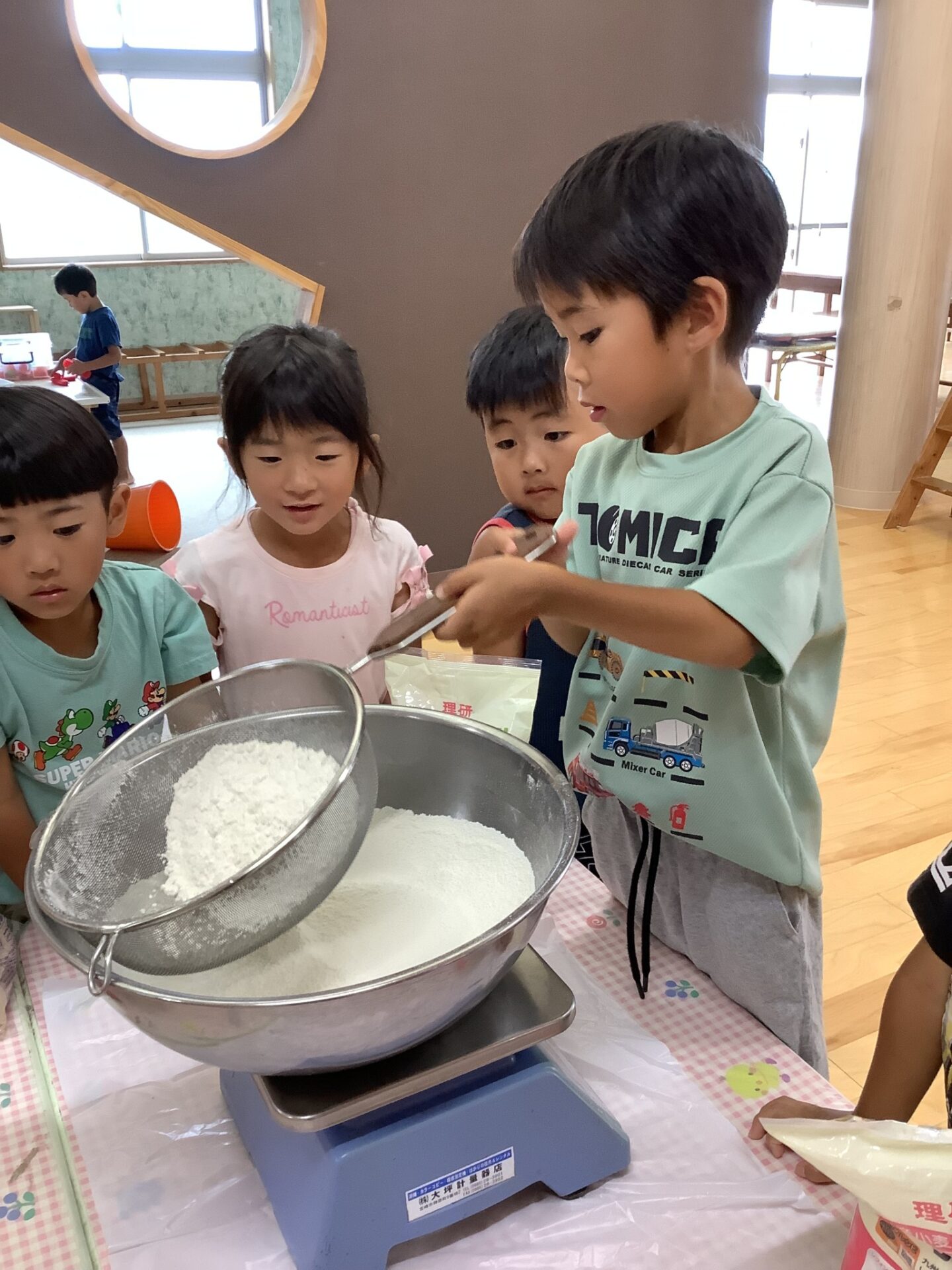 普段の全園児分のおやつの材料をみて、材料の多さにびっくり!!こんなにあるの~?!と驚きを隠せない子ども達です。