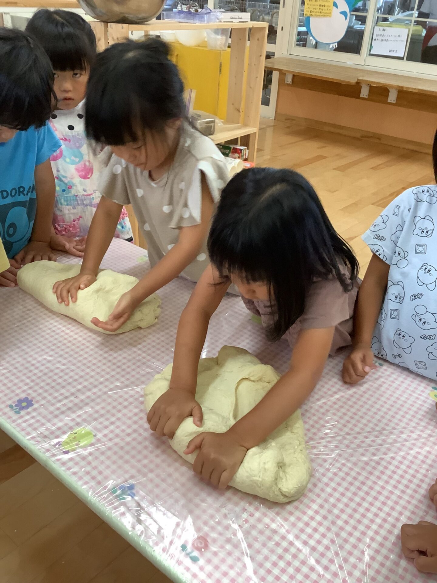 れんげ組さんの「パン作りたいね」の声から、おやつのアンパンつくり体験をしました。