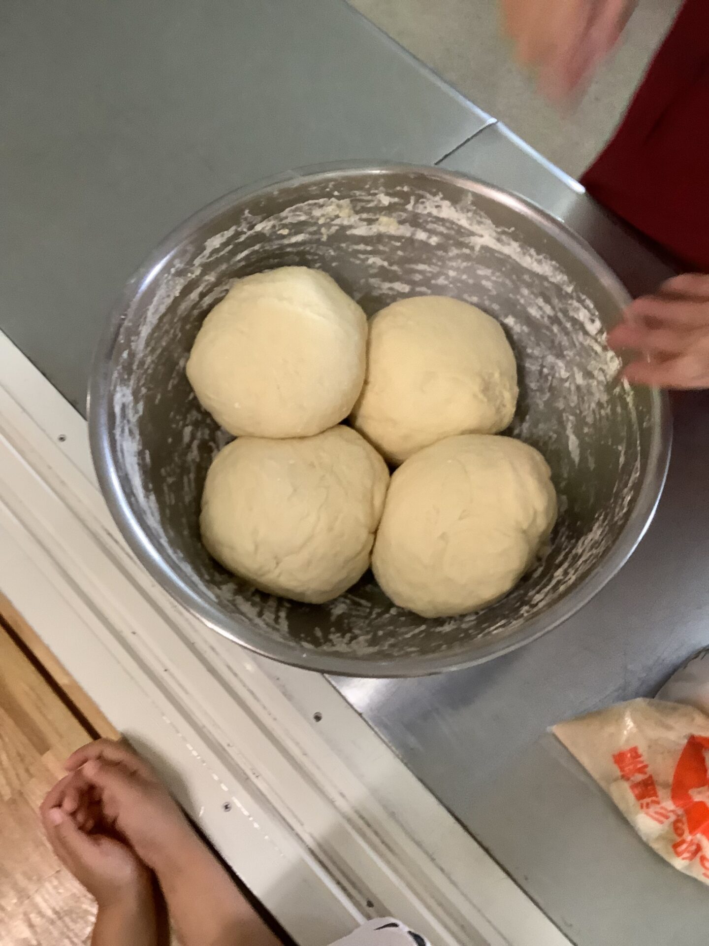 発酵して2倍に膨らんだ姿をみてびっくりしたり、腕が疲れた~!と言いながら一生懸命こねてくれたり…