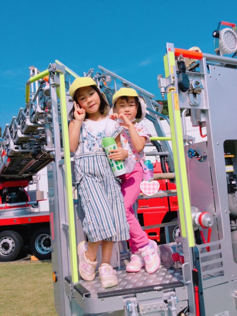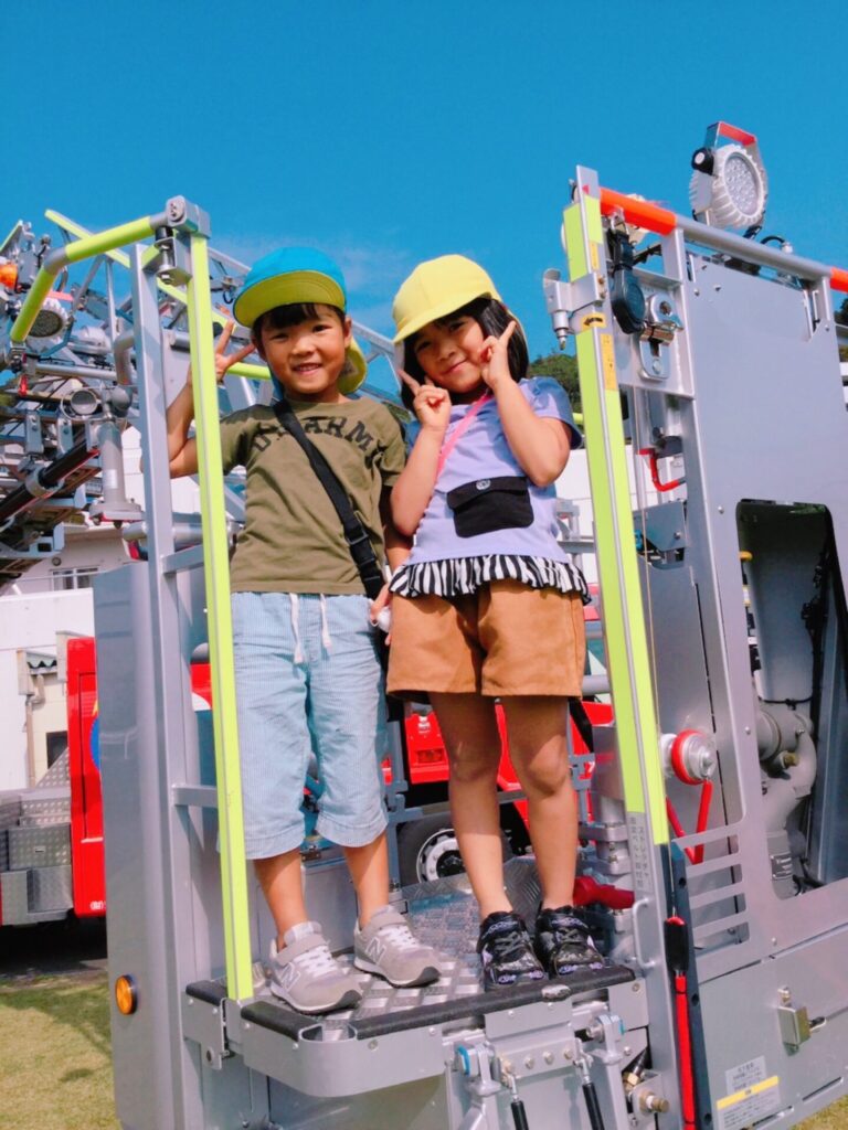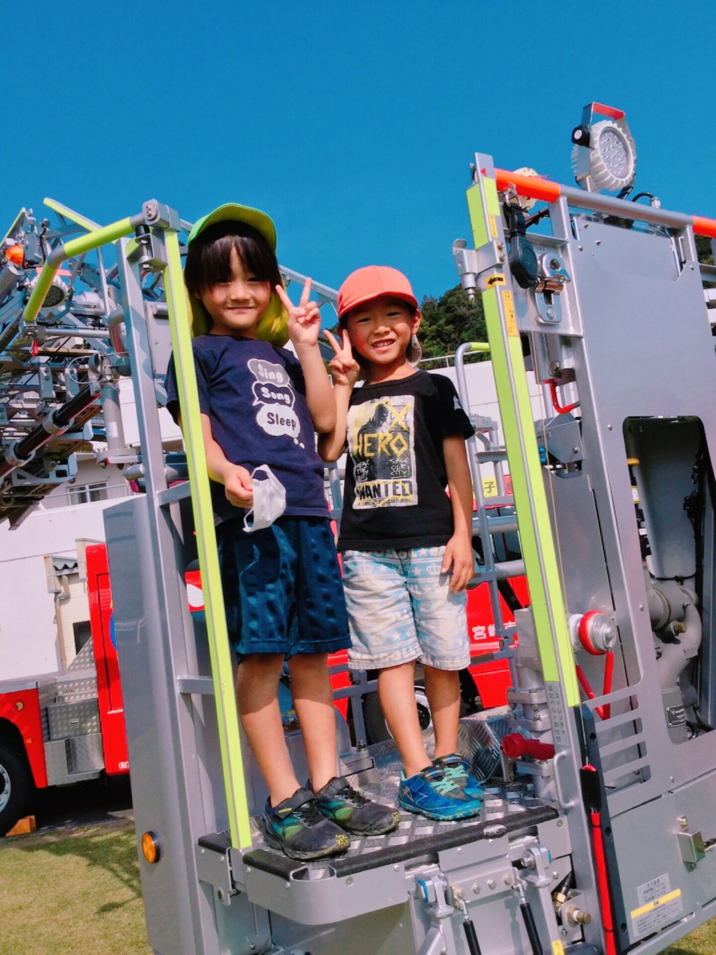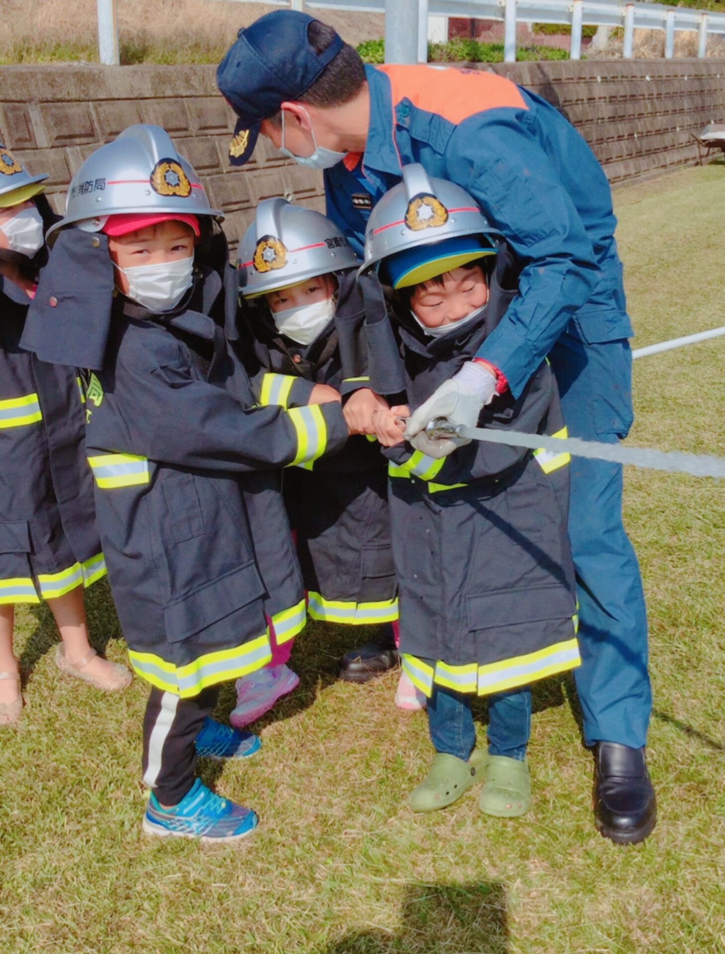 実際に消防士さんの服を着て、放水を体験したりしました。