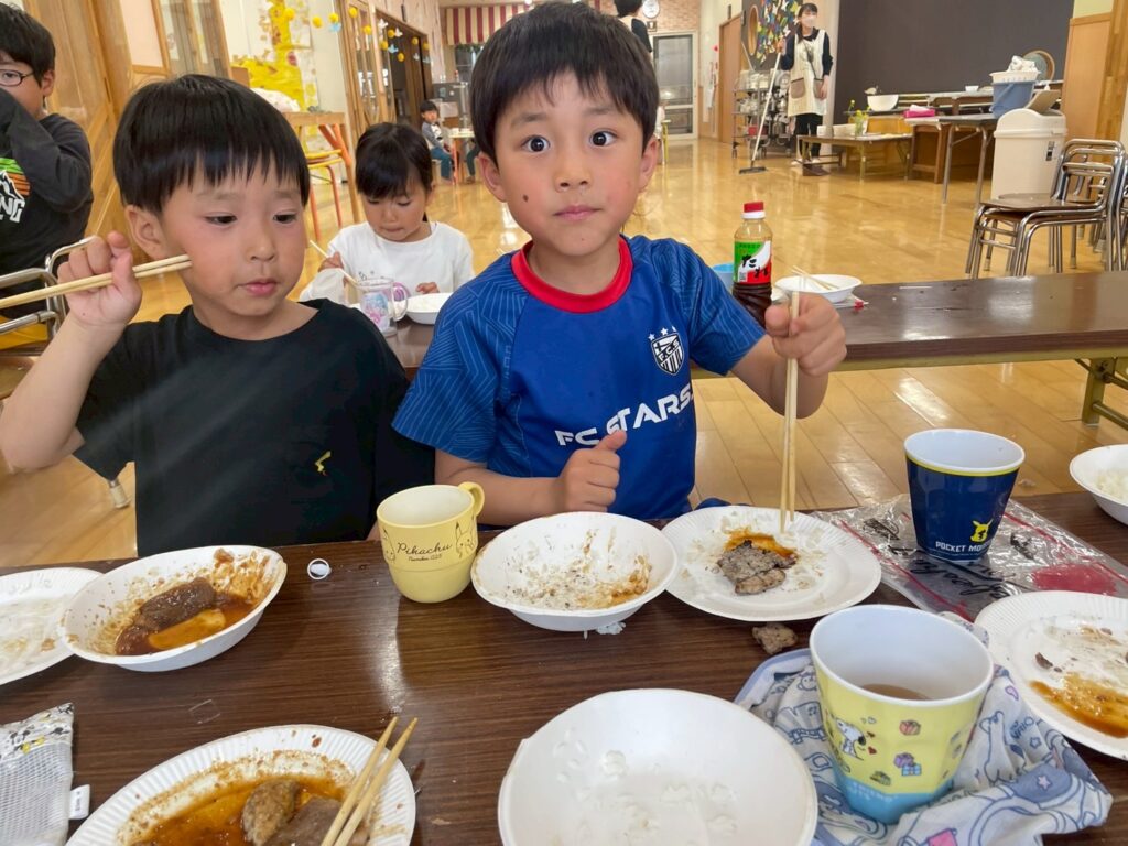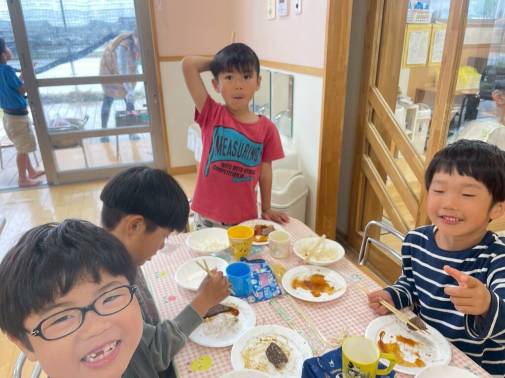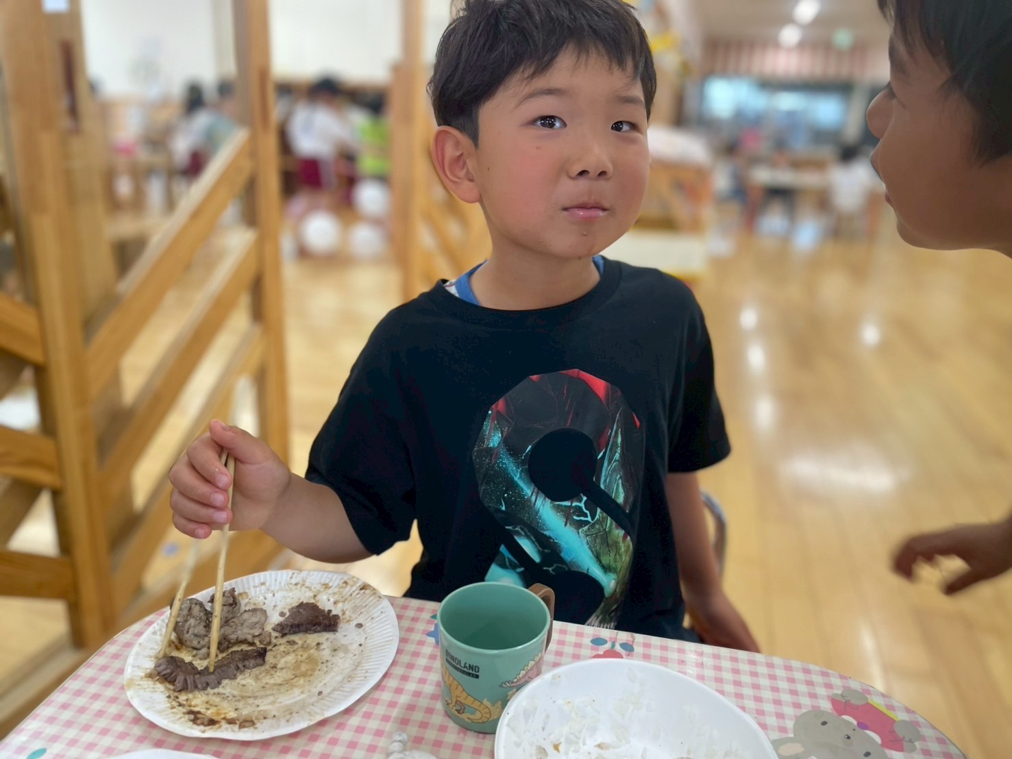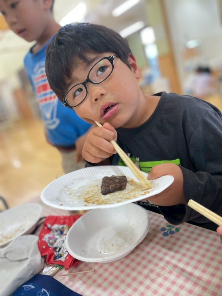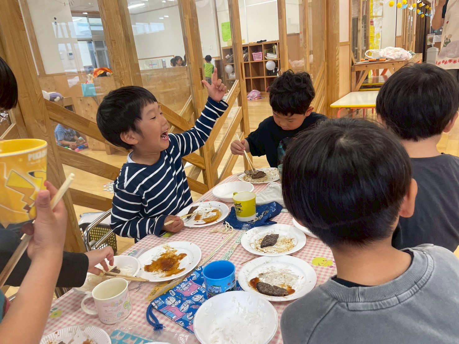牛肉や豚肉など、色々な種類のお肉もたくさん食べました😋「これがすき!!」とおしゃべりしながら、楽しそうにパクパクと食べていた子どもたちです!!