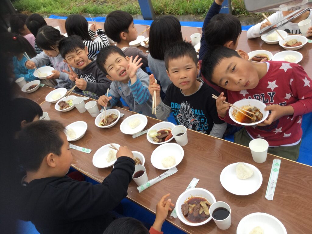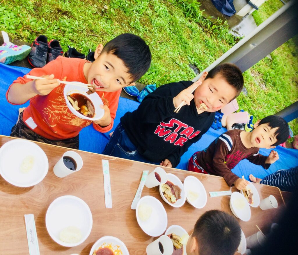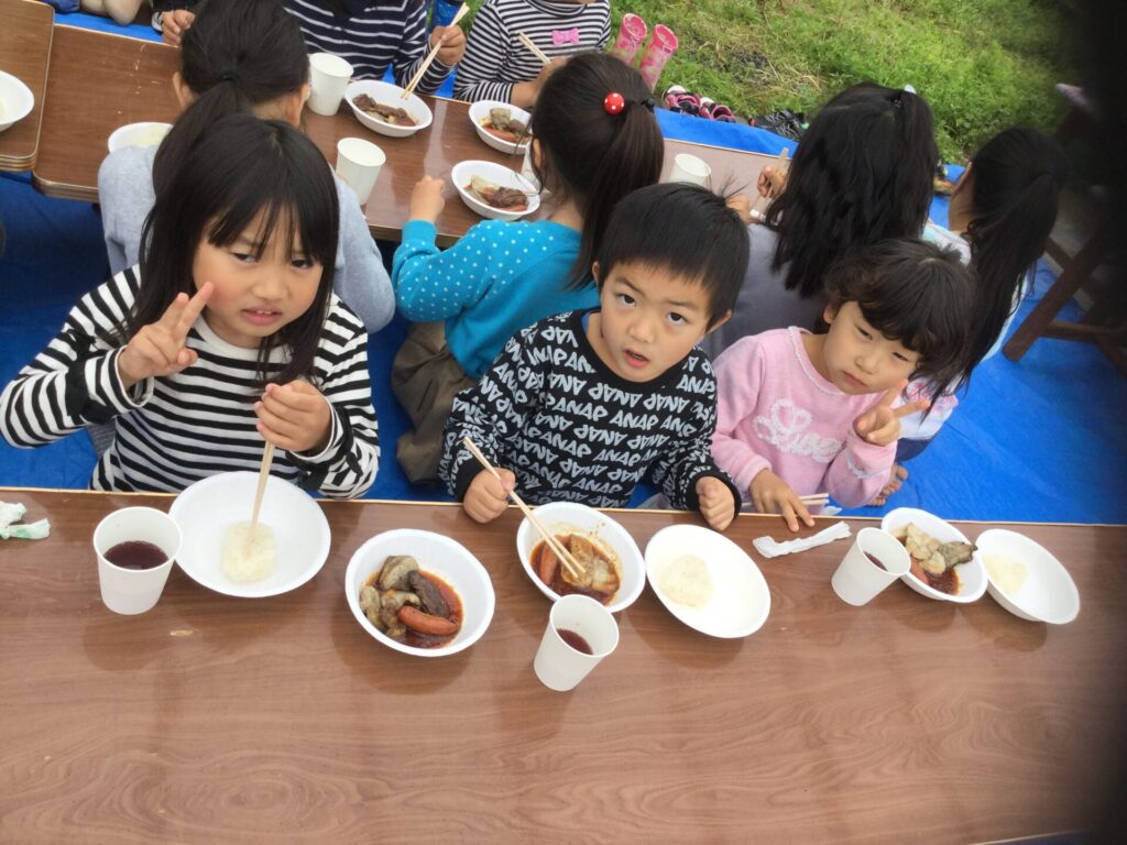 そしてれんげぐみさんは、バーベキューを楽しみました。あいにくの雨でしたが外で食べるバーベキューに大喜びでたくさん食べました★