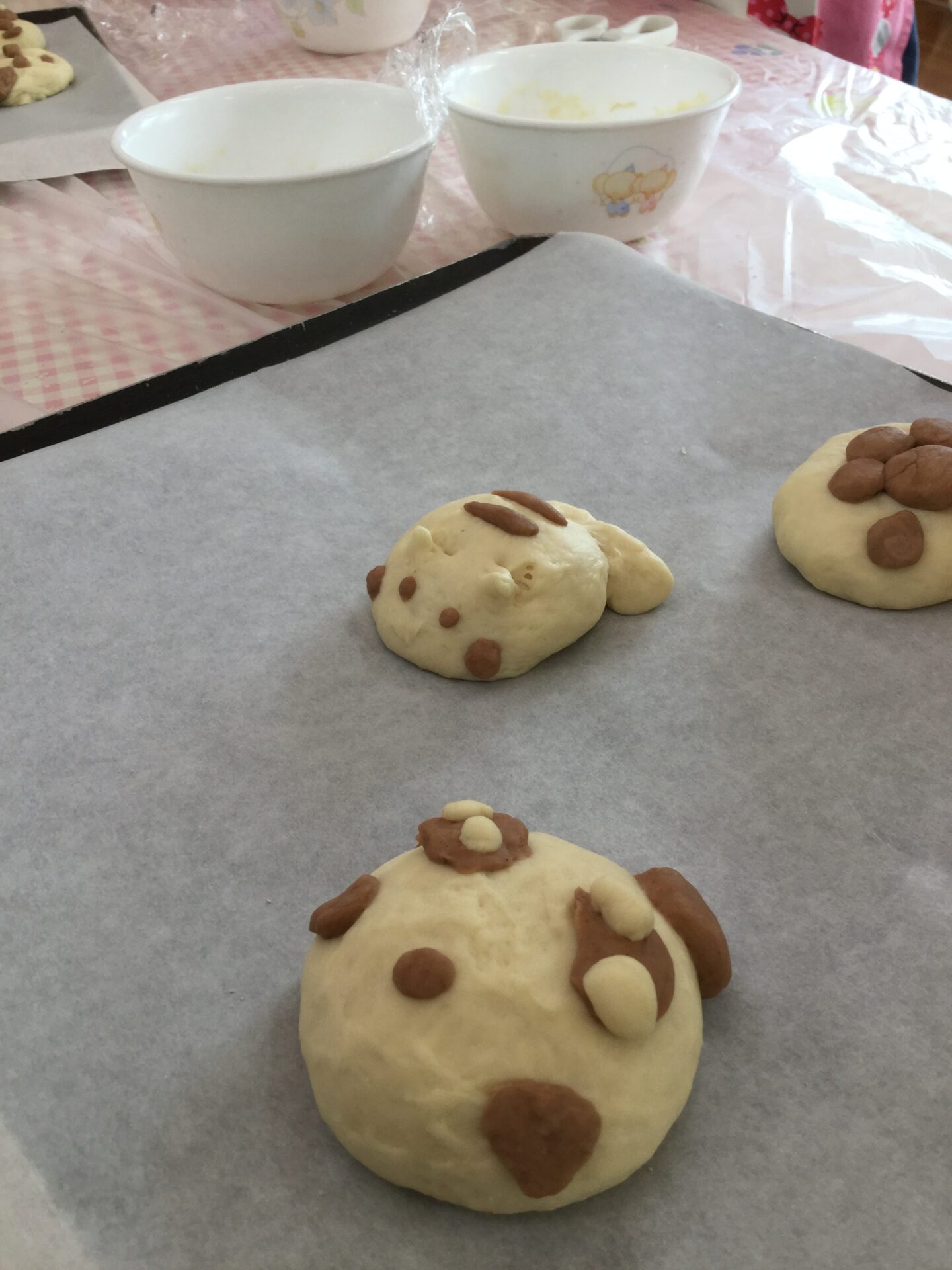 様々なキャラクターを作り、出来上がったパンを一緒に食べました。