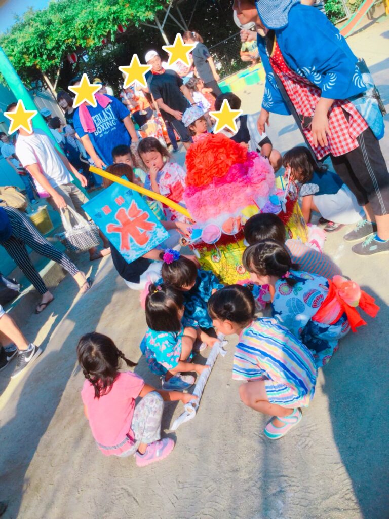 17:00~子供たちによるお神輿とリズム♪今年は「夏」をテーマに、「虫」「かき氷」「海」の3種類のお神輿を作りました。