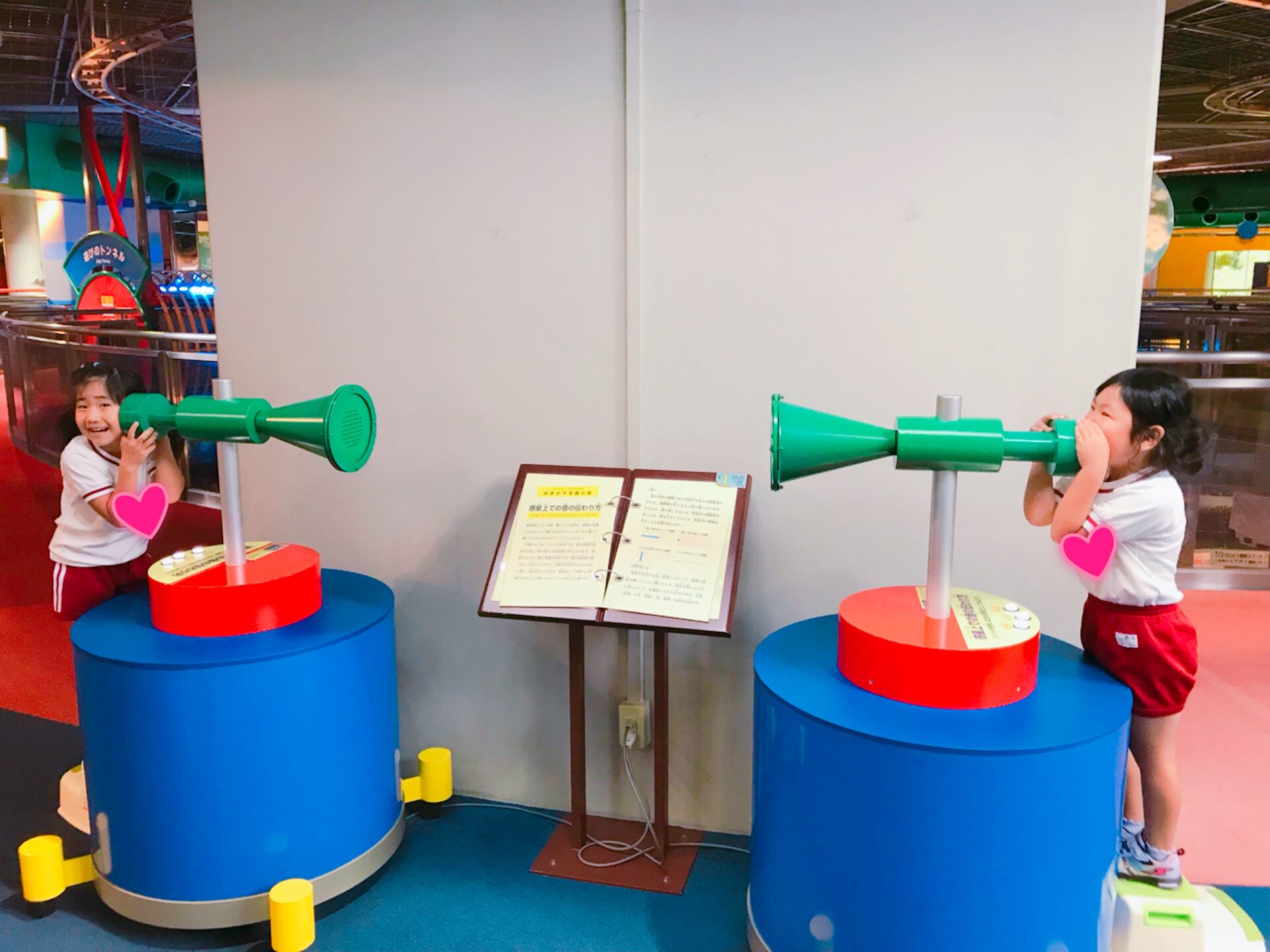 技術館の中では、たくさんの展示物があり興味深そうに観察していました。