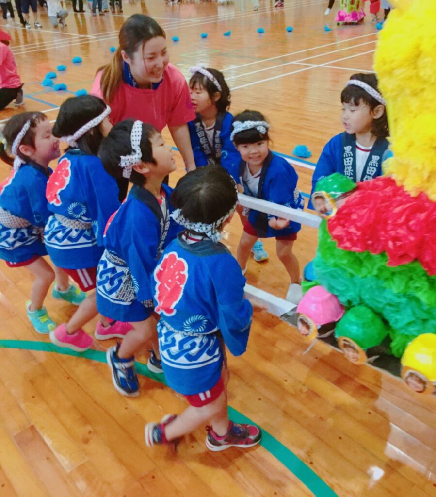未満児・以上児のリズムでは、可愛い振り付けやバチを使った勇ましい姿がありましたよ(^^)