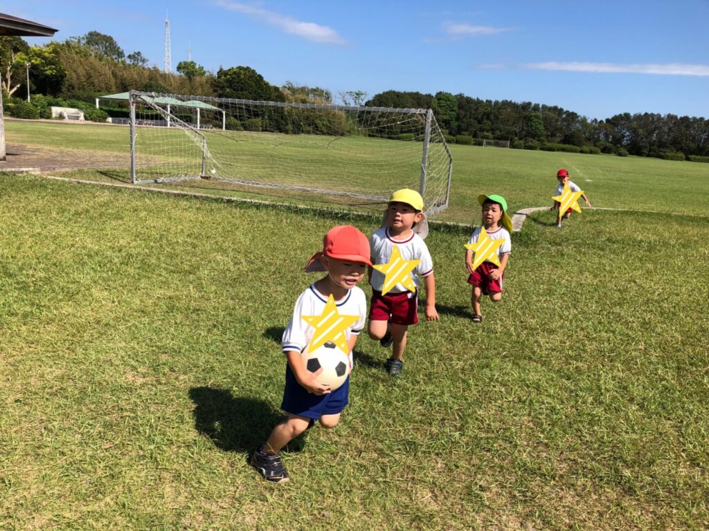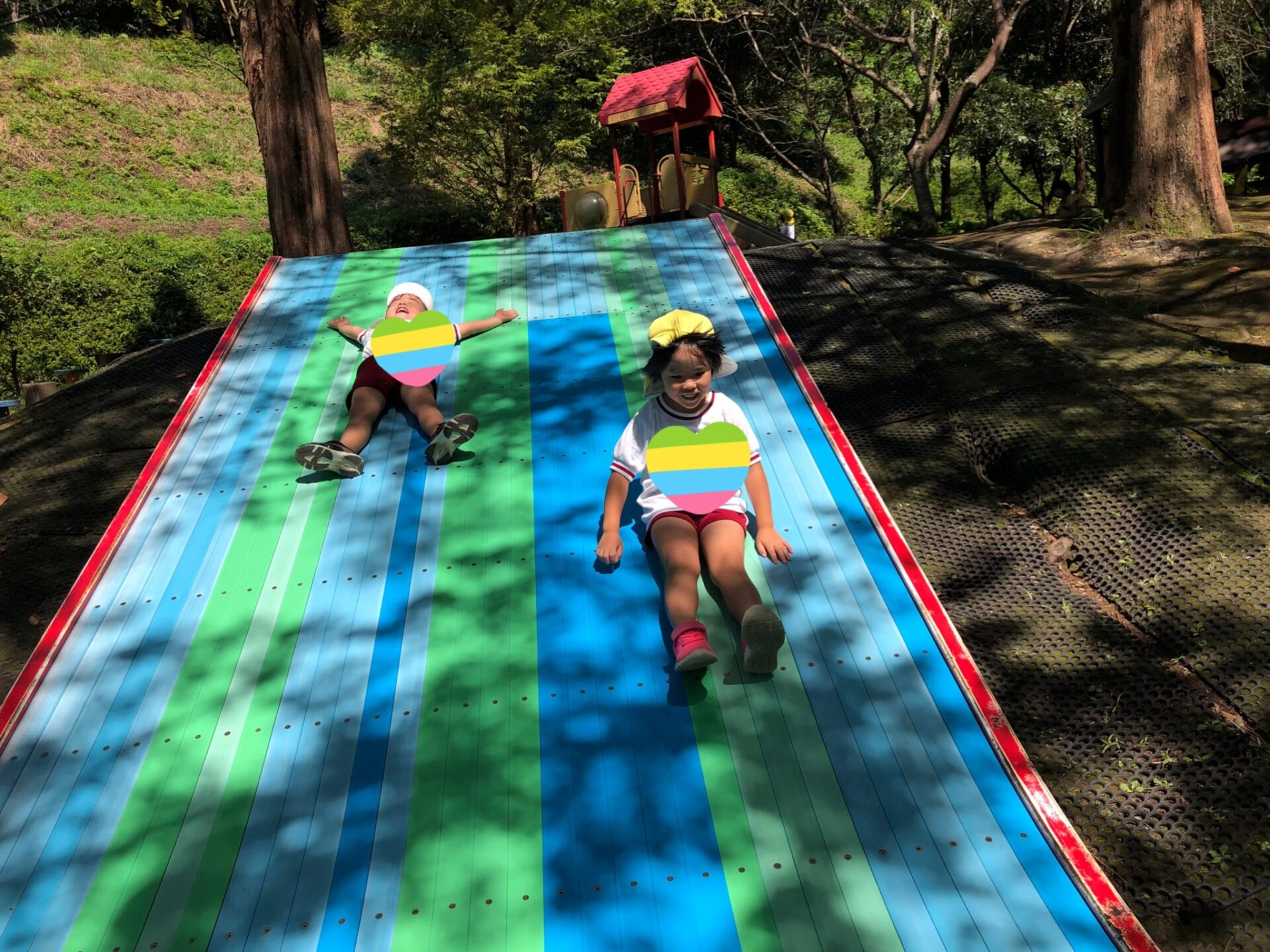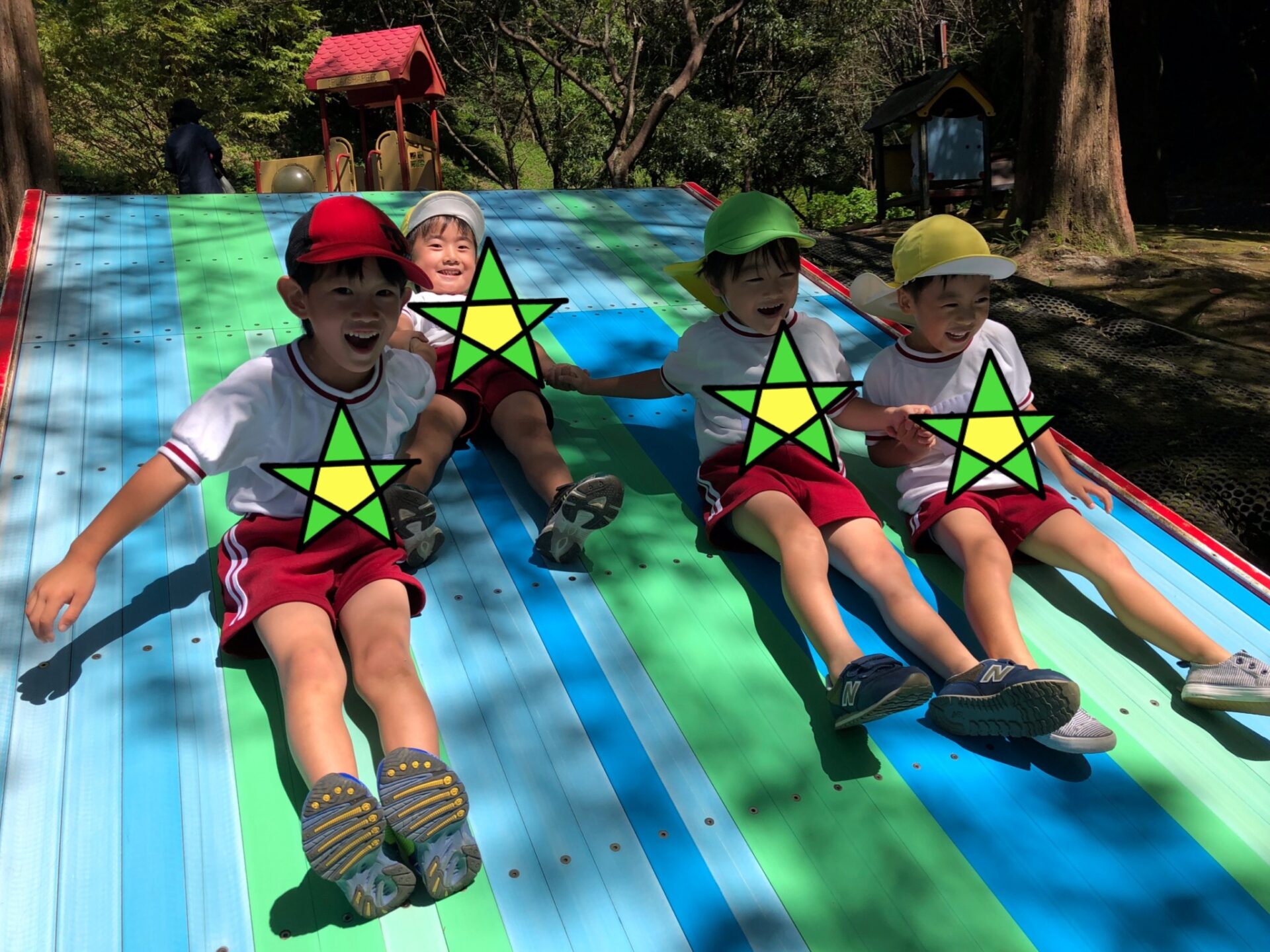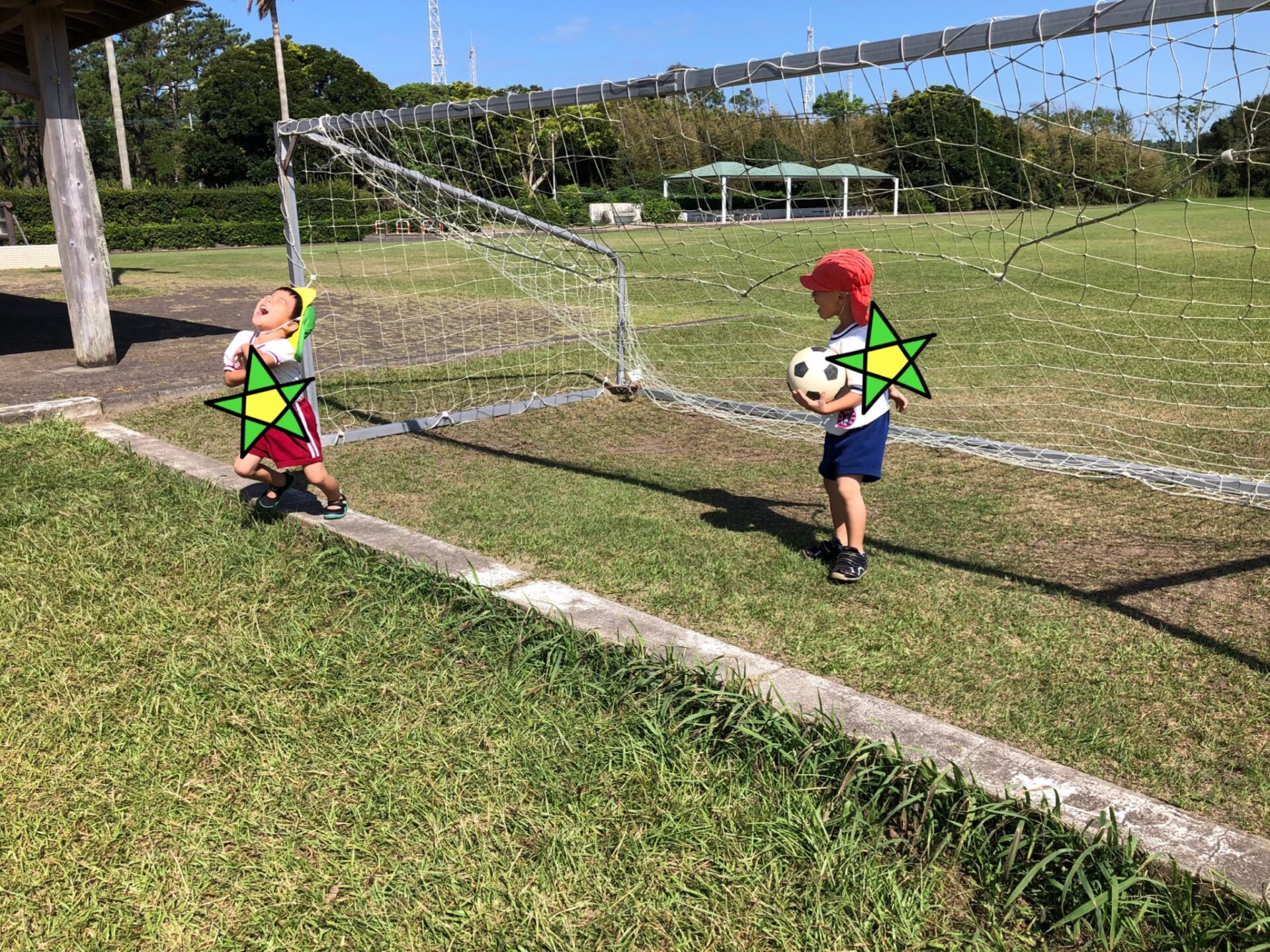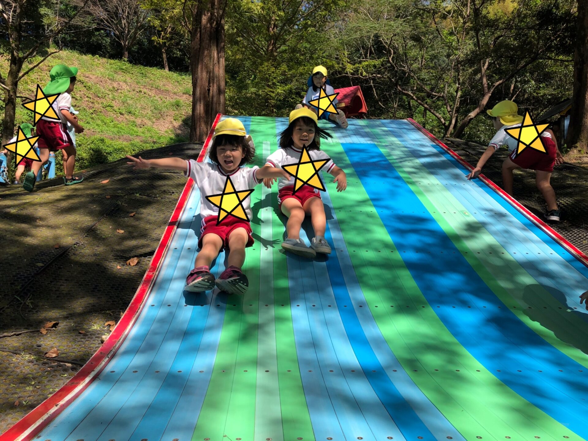 公園では、サッカーや遊具、滑り台などでたくさん遊びました。