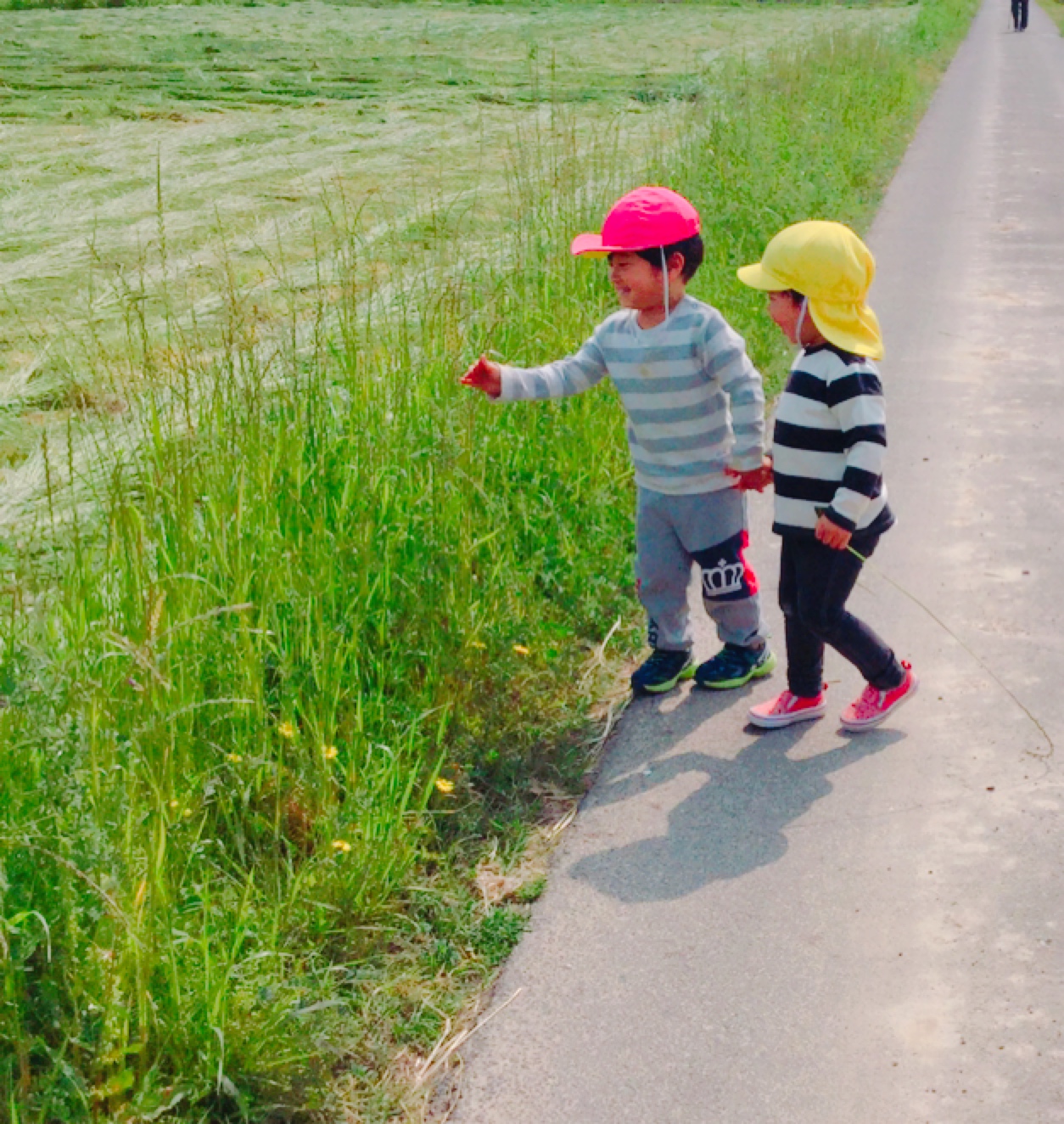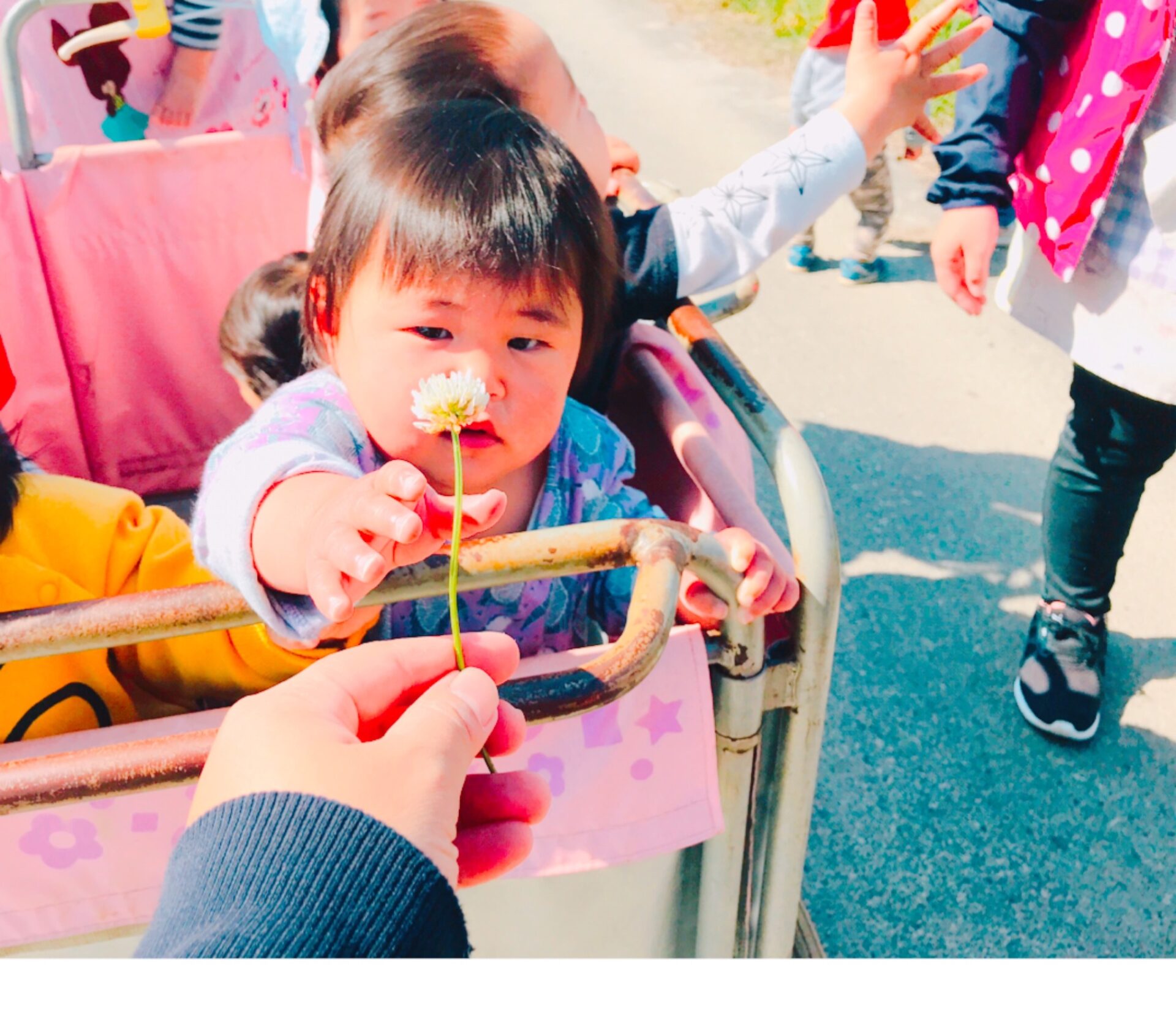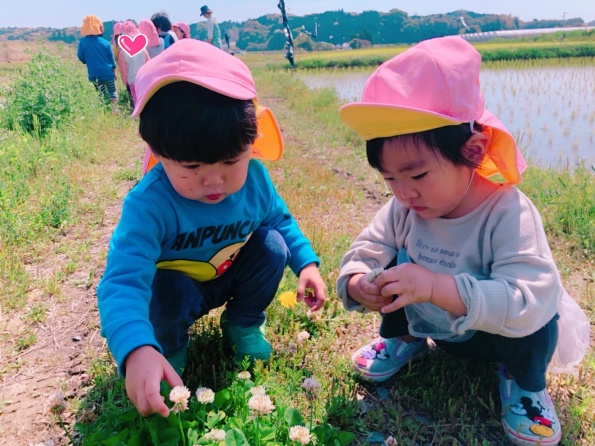 園庭はもちろん、園周辺へお散歩へ行き春の自然にも触れています。