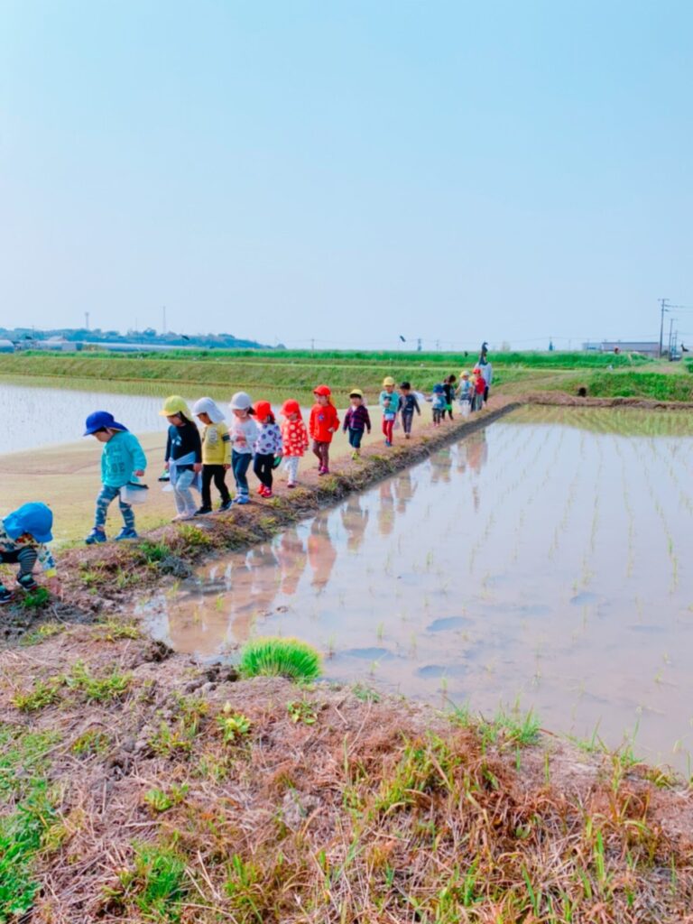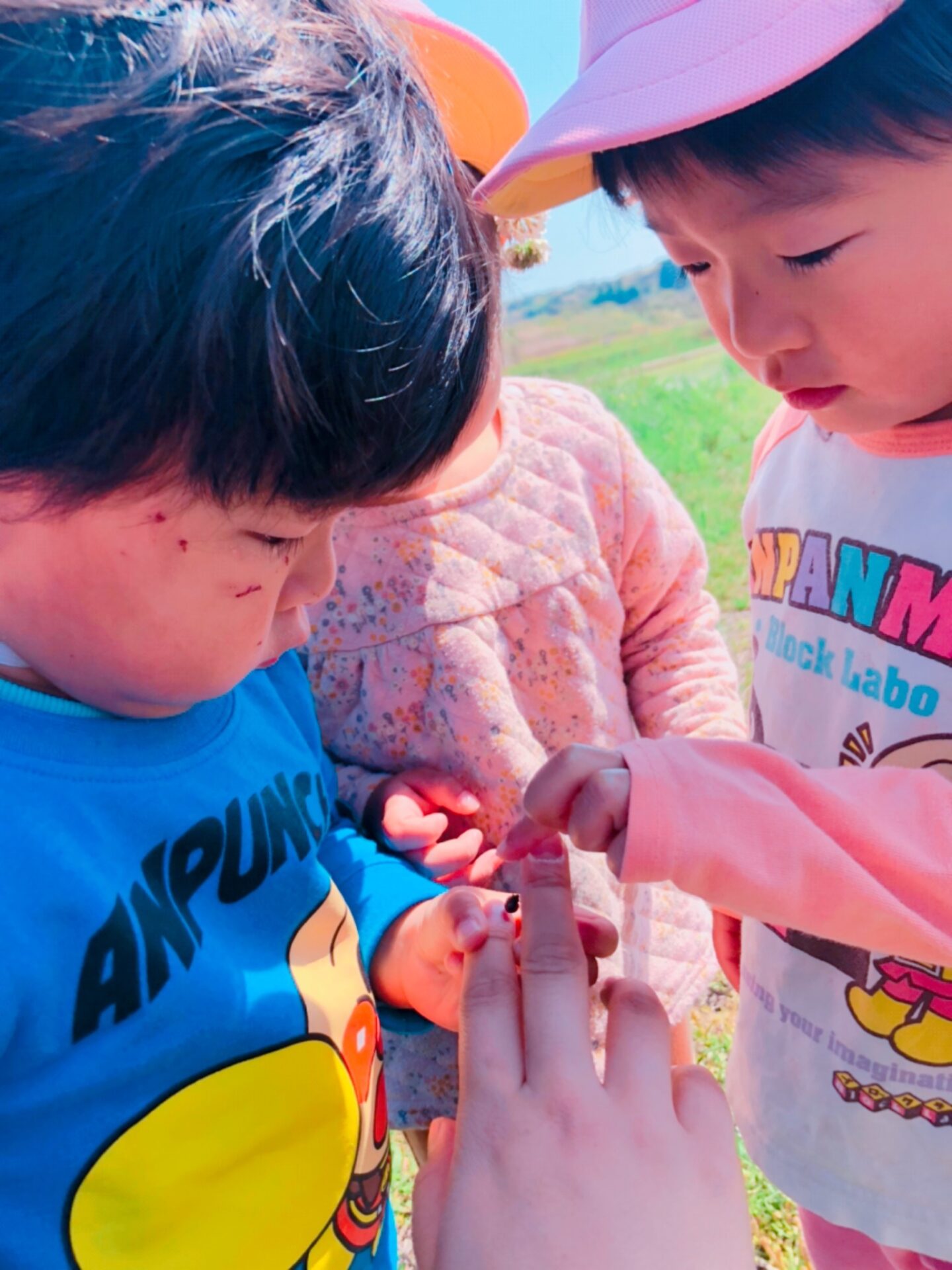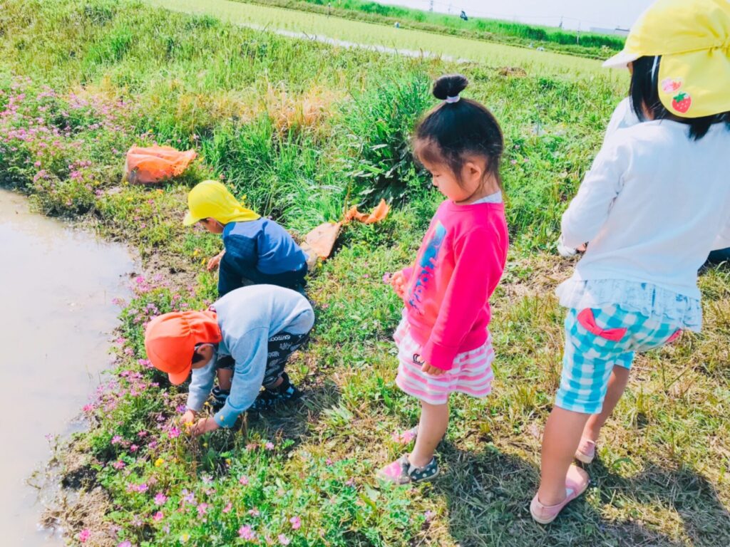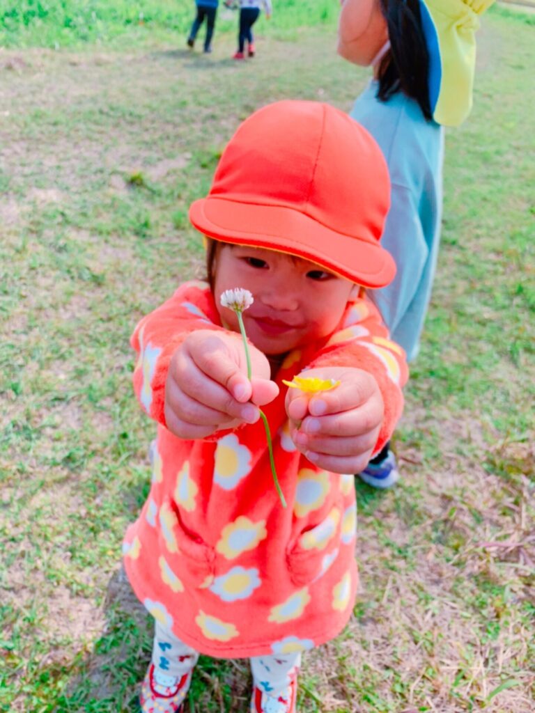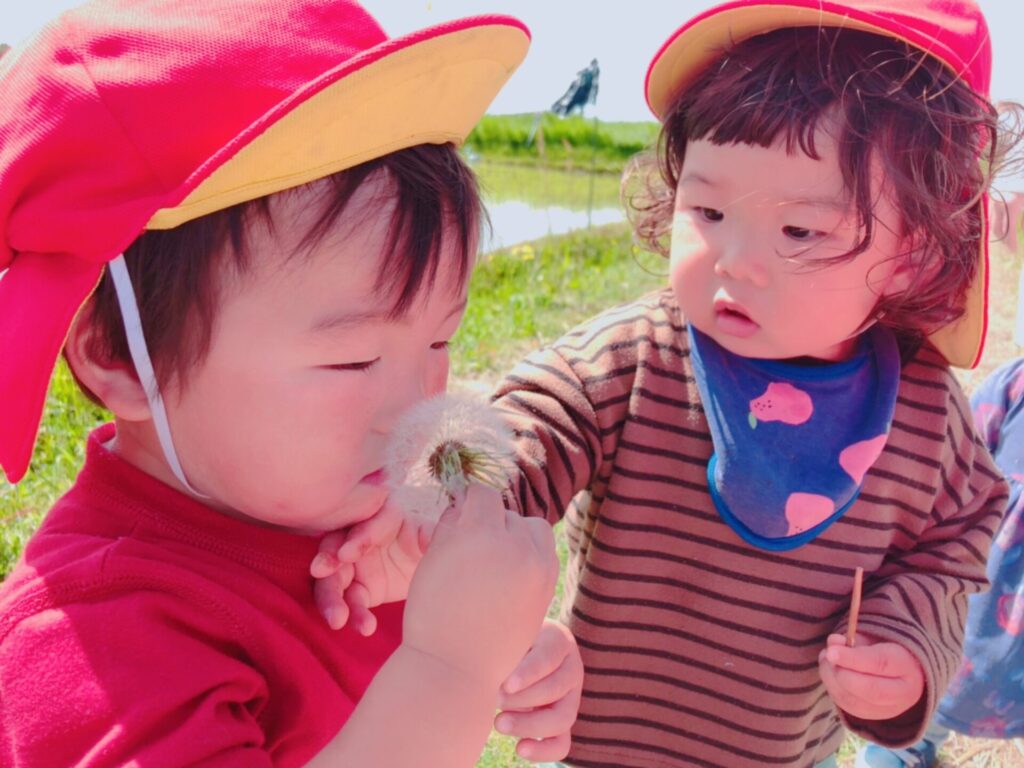 園庭はもちろん、園周辺へお散歩へ行き春の自然にも触れています。