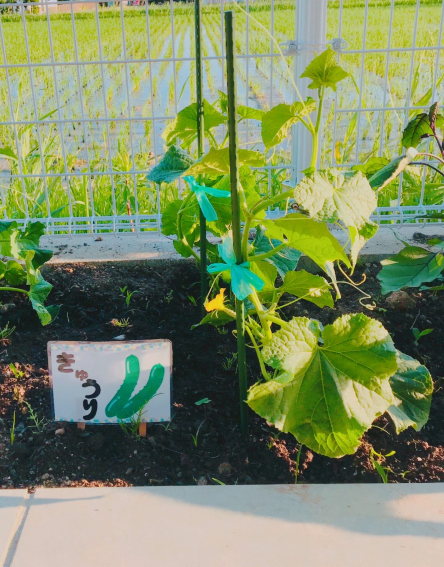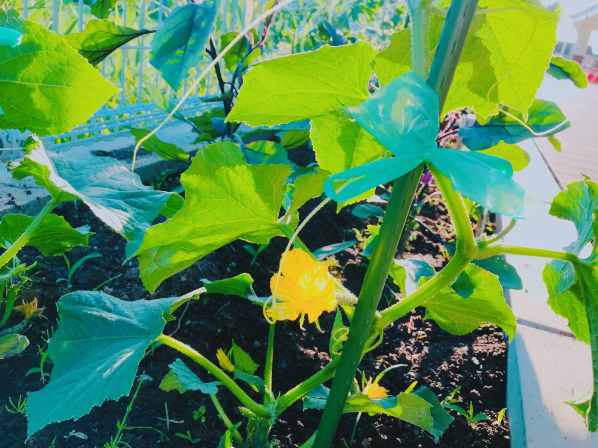 きゅうりは花が咲き始めましたよ(*^-^*)