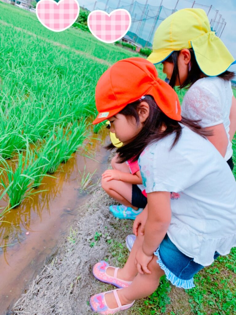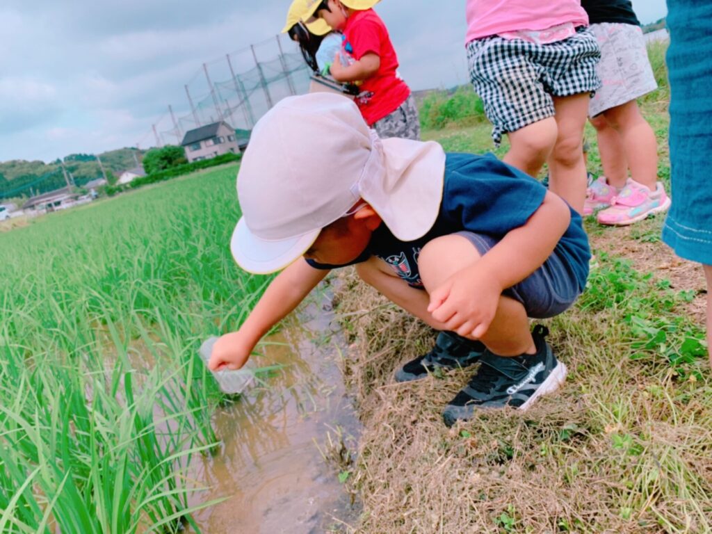 園周辺にお散歩へ行くのですが、田んぼにいるアメンボやおたまじゃくしに興味津々。