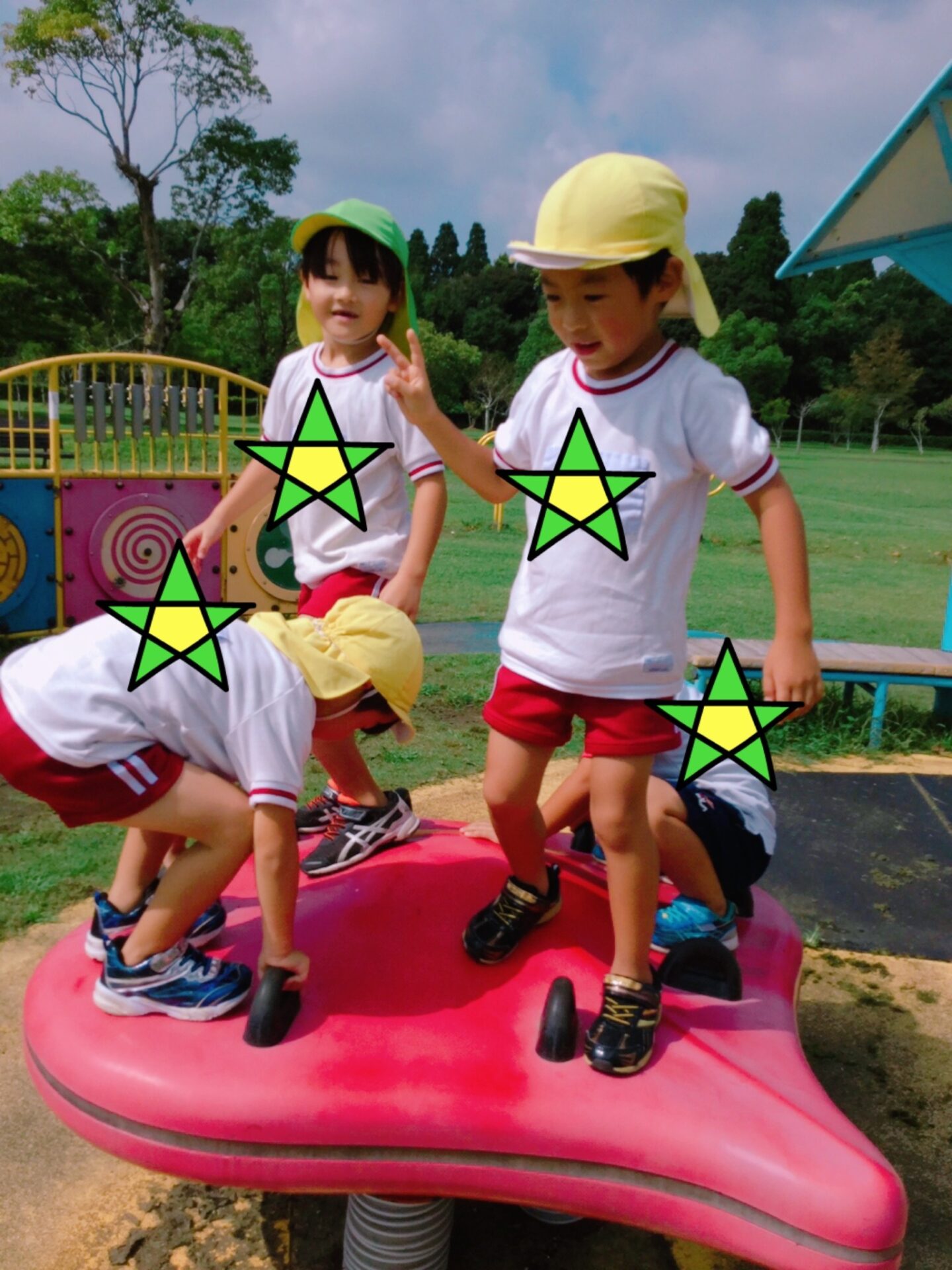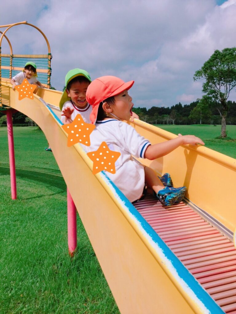降園では、遊具のボルダリングや滑り台を楽しんだり、虫を捕まえたりしましたよ(*^-^*)